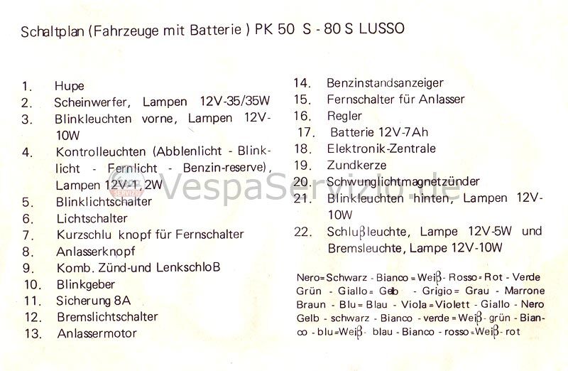 Ich lad dir mal den [lexicon='Schaltplan',''][/lexicon] von pk80s Lusso hoch. Zwar steht bei einem Batterie drüber - aber um bei mir das Licht bei der PK50S zu "reparieren" hats gereicht
