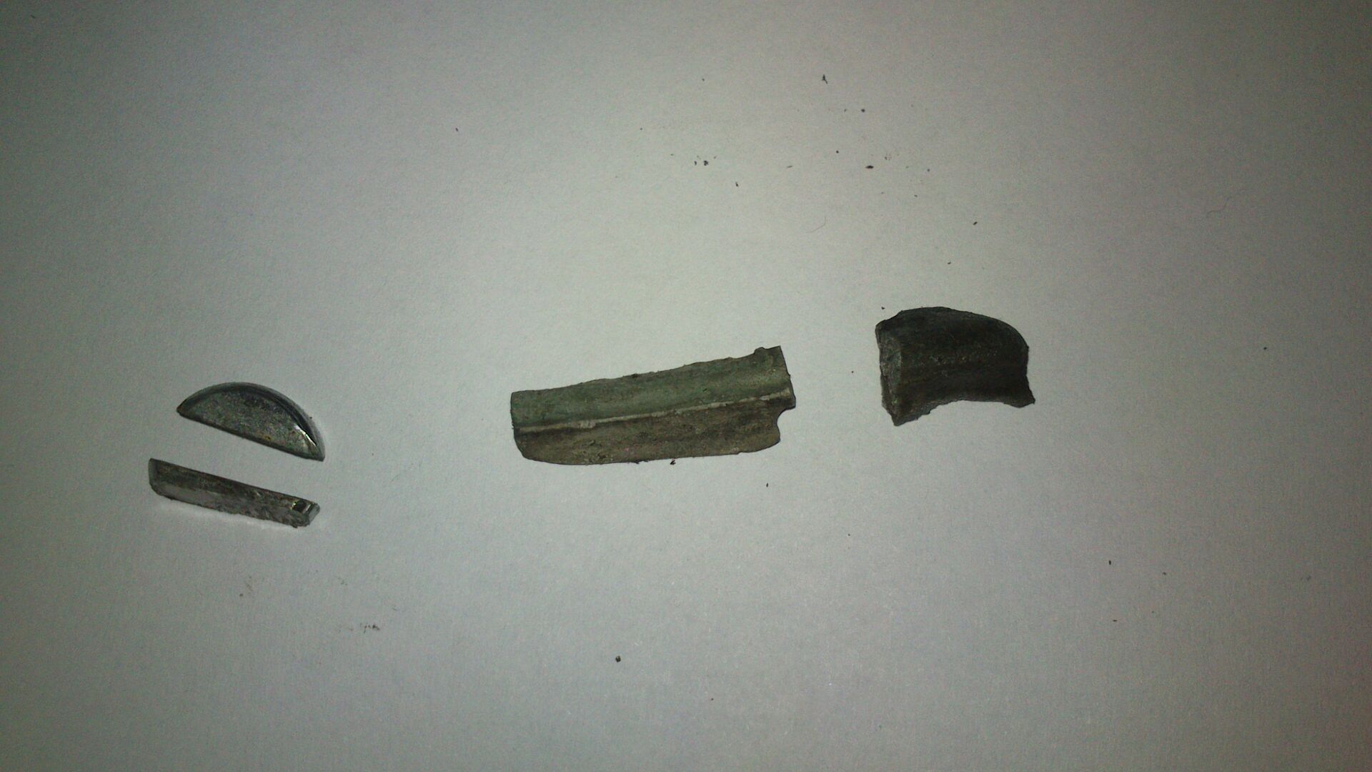 Außerdem hab ich noch ein Metallteil im Schacht gefunden - spröde und leicht zu zerbrechen, und auch nicht vollständig (rechts im Bild).