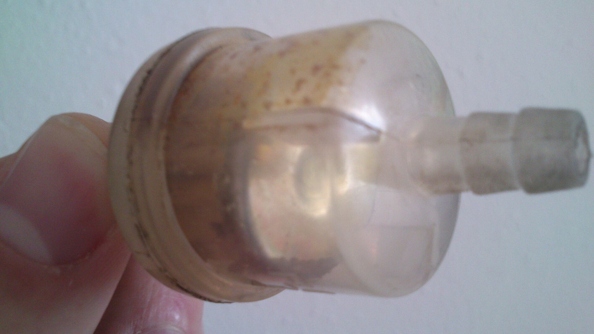 Habe den Vergaser ausgebaut und grob gereinigt, der Benzinfilter war sehr verdreckt, ebenson wie schon der Filter in der Tankleitung (vgl Foto weiter oben).