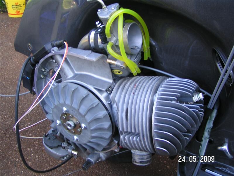 Hoffentlich saug ich mir keine Plastikteile in den Ansauger! Erster Gang Vollgas geht eh nicht, da sonst Überschlag! Also nur mit dem Gas prollen, und im 2ten dann bei Halbgas in die Reso. Da sehn Sie mich dann noch. Hören werden sie mich noch in 2 Kilometer Entfernung...... ![]()