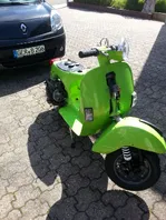 Bremsankerplatte hängt immernoch dran. Hab heute aber auch nur schnell meine Vespa vom Lackierer geholt :). Geht leider etwas mehr ins Grasgrüne als erwartet, aber mir gefällts trotzdem. In echt sieht es nicht so krass aus wie durch das künstliche Fotolicht (steht schon in der Scheune). Super Metalliceffekt im Sonnenlicht ![]()