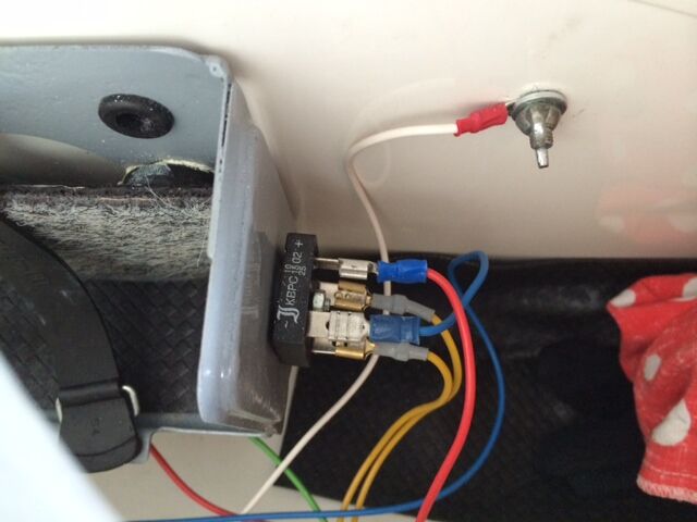 der Brückengleichrichter auf dem Bild war falsch angeschlossen da hab ich jetzt einen neuen bei Conrad geholt und richtig angeschlossen ob er defekt war kann ich nicht sagen.