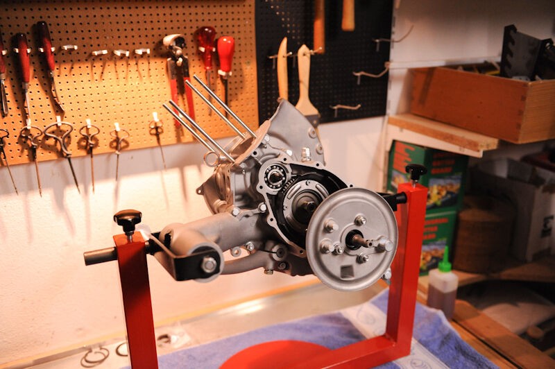 die Blechteile gingen zum strahlen, die Motorteile hab ich selbst glasperlengestrahlt, der Zusammenbau des Motors waren die ersten Schritte im Weihnachtsurlaub