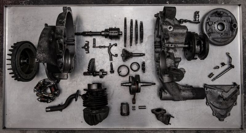 DRT Primär, Gangräder einer normalen V50, verstärke DRT Schaltgabel, Kickstartermechanik in der ersten Gehäusehälfte montiert