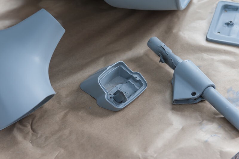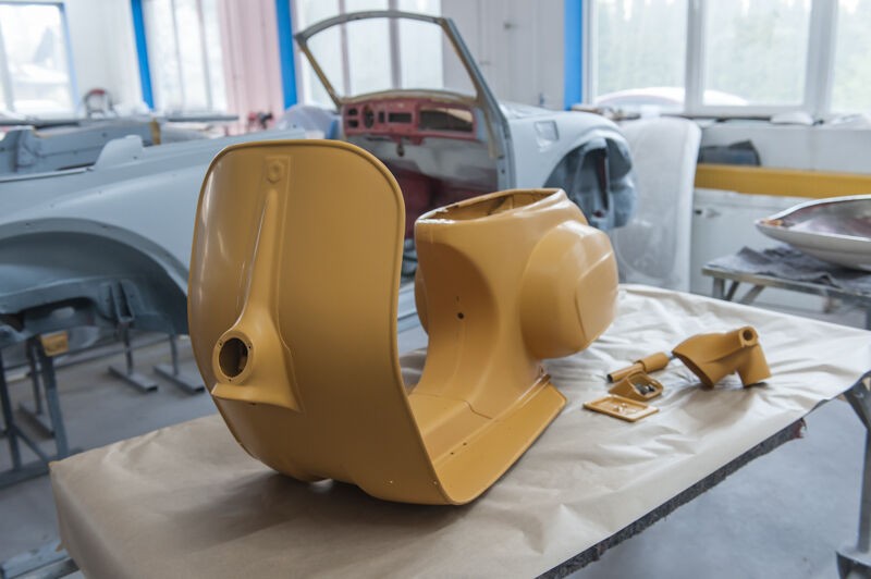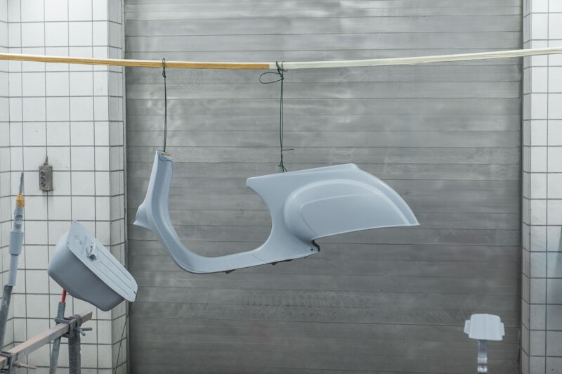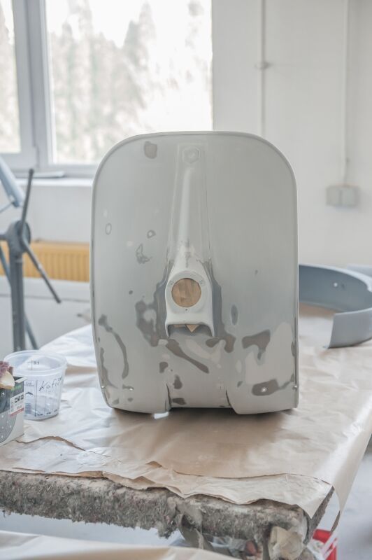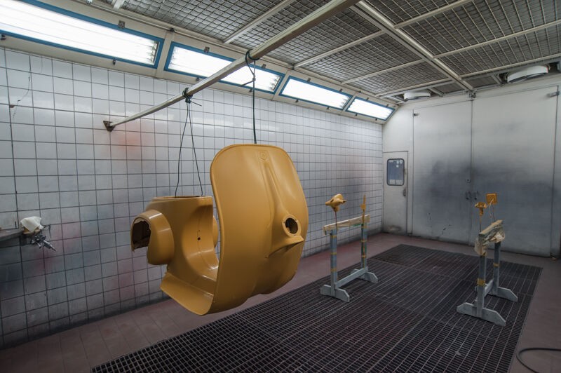 der Roller in der Lackierkabine