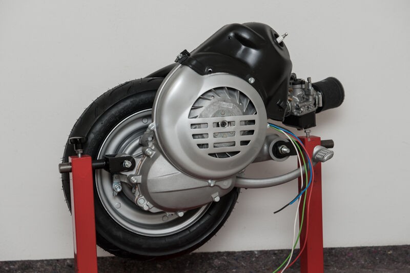 24er dellorto phbl, getriebezahnräder von der normalen v50 (die v50s ist länger), drt runner nebenwelle, glaube 2,54 primär (muss ich nachsehen). Kupplung von der xl2, mazzu rennwelle. 133 polini racing, 2mm höher gesetzt, oben abgedreht, Aus- und Einlass entsprechend erweitert und PM40.