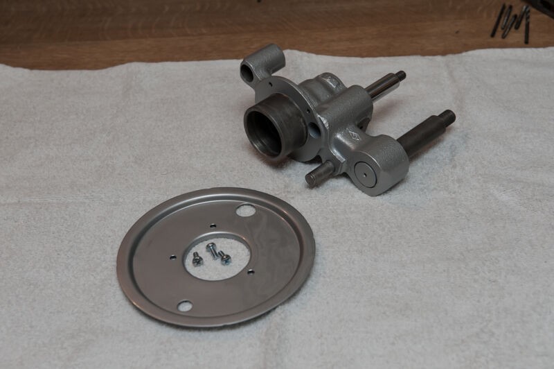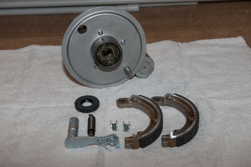 die fast komplette FrontansichtFußbremshebel Silber lackiert und zusammengebaut