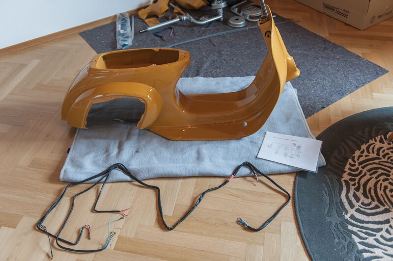 Seilzüge schon eingezogen, SIP Kabelbaum liegt noch vorm Roller