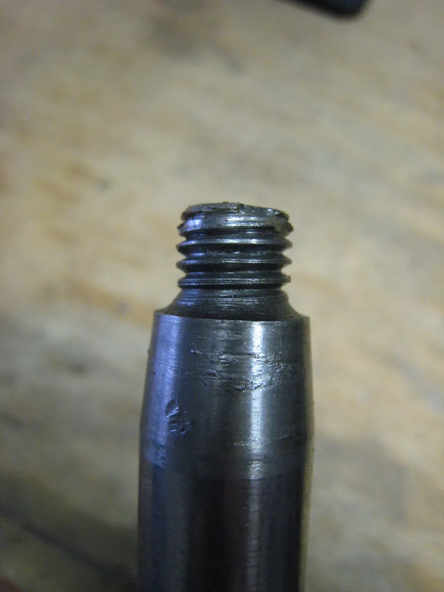 Aber das Gewinde an der Nebenwelle sieht nicht so toll aus..... Ich bekomme da keine Mutter drauf. Irgend so'n penner scheint das mit nem vorschlaghammer bearbeitet zu haben.