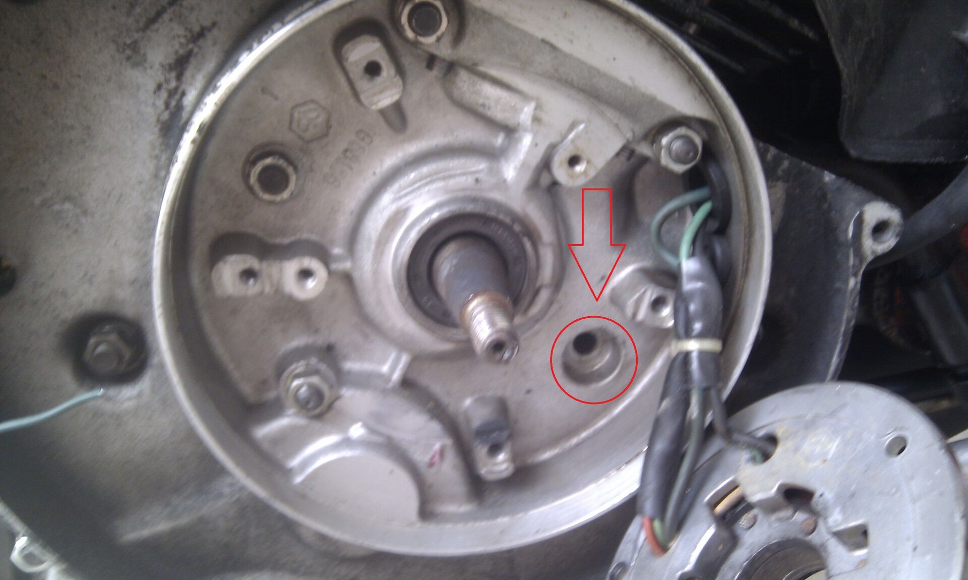 Einstellen der Zündung aufgefallen das hinter der Zündgrundplatte eine Bohrung druch den Motorblock geht,