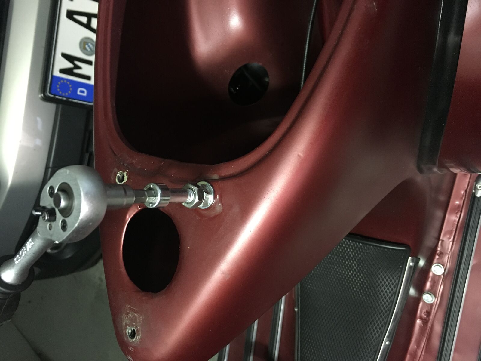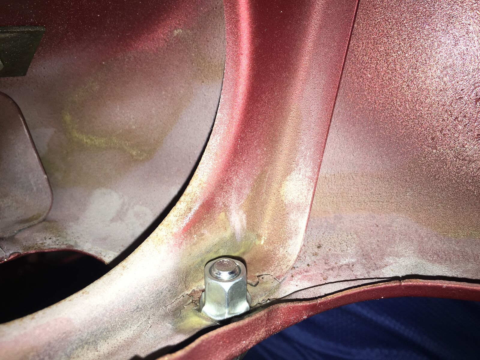 Siehe erstes Bild. Mutter hats mir durchs Blech gezogen. Dann hab ich sogar auf deine Idee hin ne Blindnietmutter probiert. Und nachdem ich keine Lust hatte über 100€ für Spezialwerkzeug auszugeben die Tipps im Forum wahrgenommen und hat gut funktioniert.