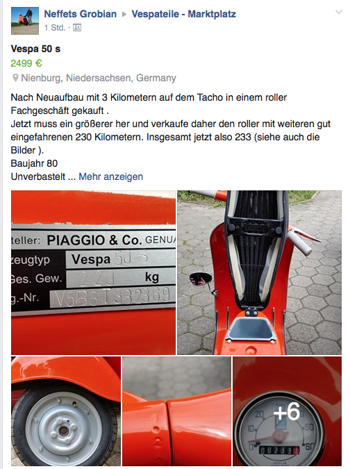 Des Nummernschild is auch breiter als die Vespa