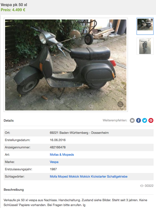Preis finde ich für eine Händlerresto normal, was nicht heißen soll dass ich dir zu dem Kauf raten würde. Aber mehr Informationen wären schon gut.