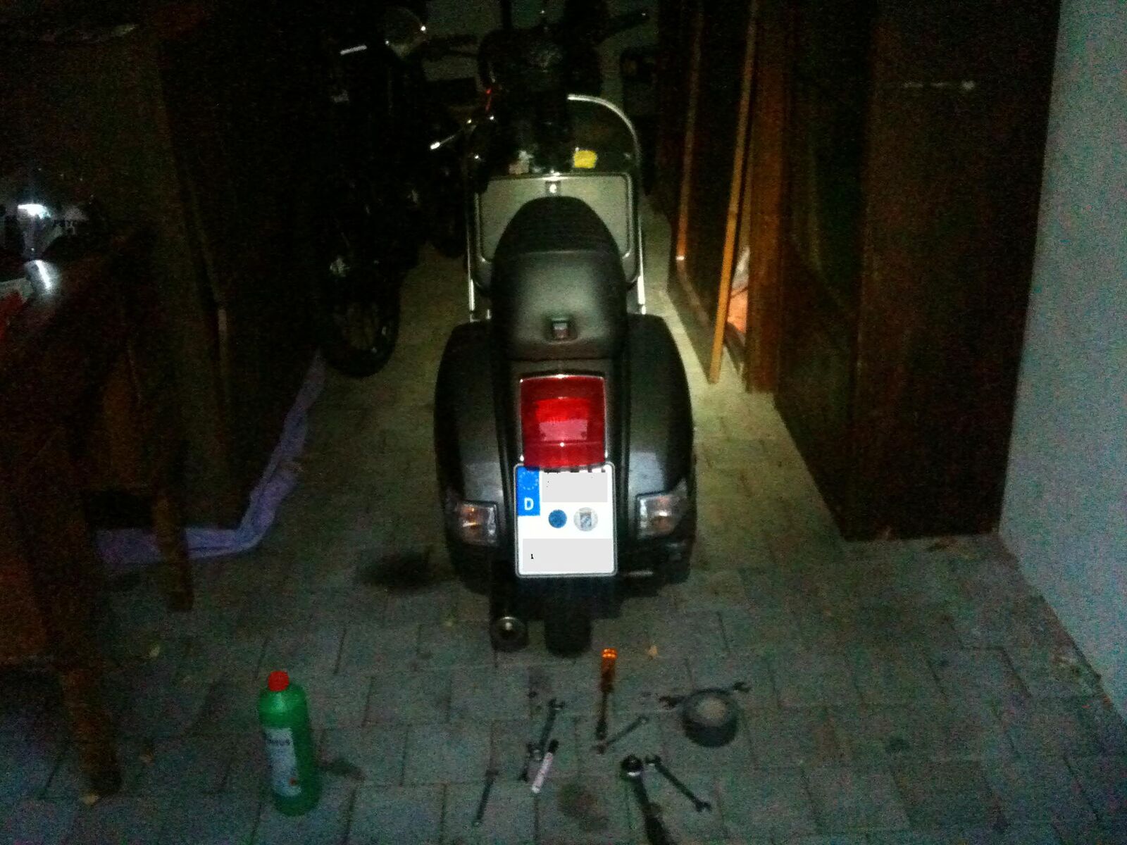 habe mir heute vorgenommen, das Kennzeichen meiner neu zugelassenen PX200E Lusso zu montieren.