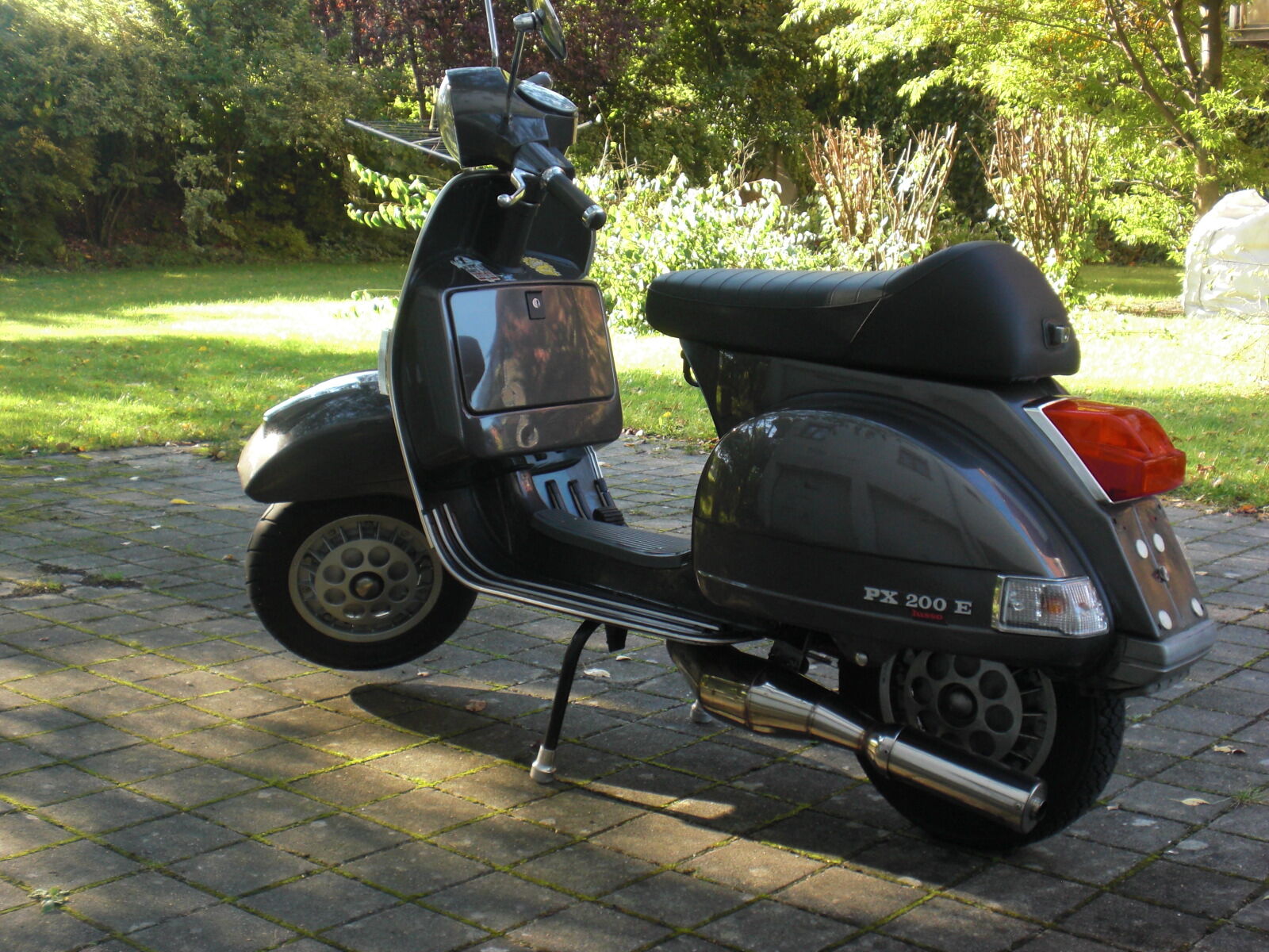 Jahre später habe ich mich auf die Suche begeben und bin über Umwegen auf eine anthrazitfarbene (Originallack) und weitgehend Originale PX200E Lusso Baujahr 1988 gestossen und habe kurz darauf zugeschlagen.
