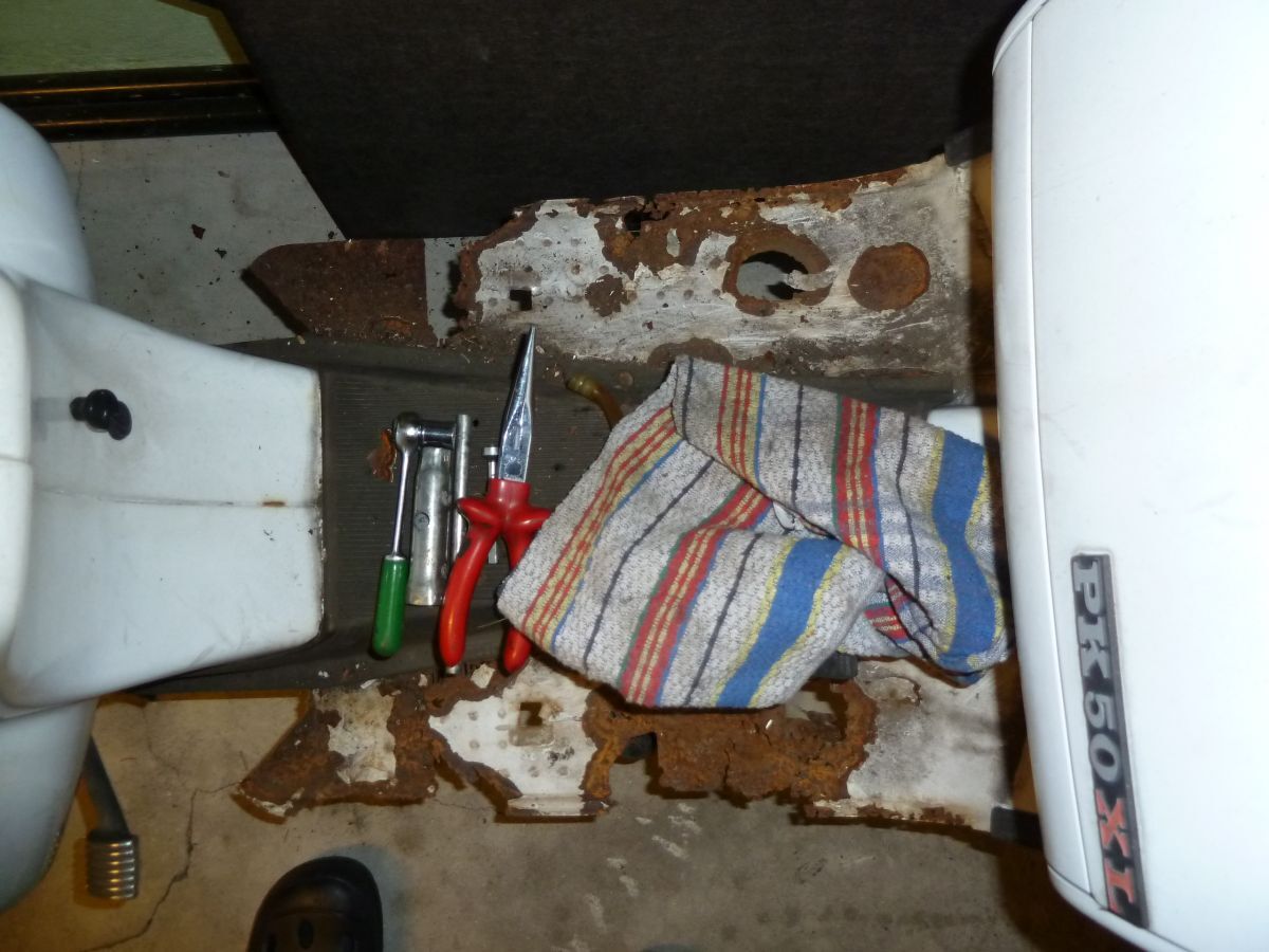 Ohne Bodenbleche sieht die Gute übrigens jetzt so aus. Die Gummimatte in der Mitte ist inzwischen auch entfernt, wo es natürlich ähnlich aussieht.