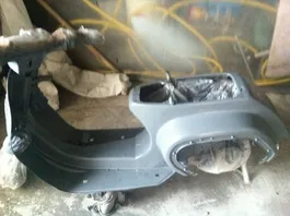 So: Der Lack ist auch schon da, das moppet wird in laufe der nächsten Wochen auseinander geschraubt, geschliffen und hinten gespachtelt und gecuttet. Blinkergitter und rücklichtgitter haben heute ihre erste Schicht schwarlack bekommen, morgen kommt Noch mal eine zweite drüber.