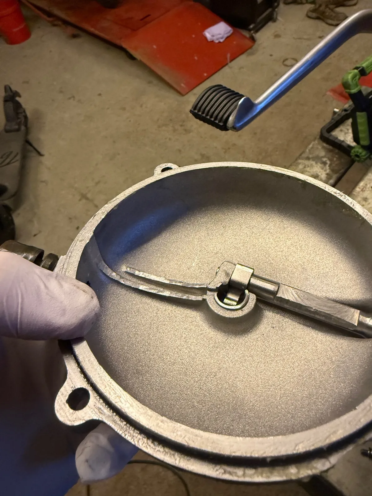 Ich bin da fast auf Niveau des Deckels. Beim Durchtreten scheuert nichts.