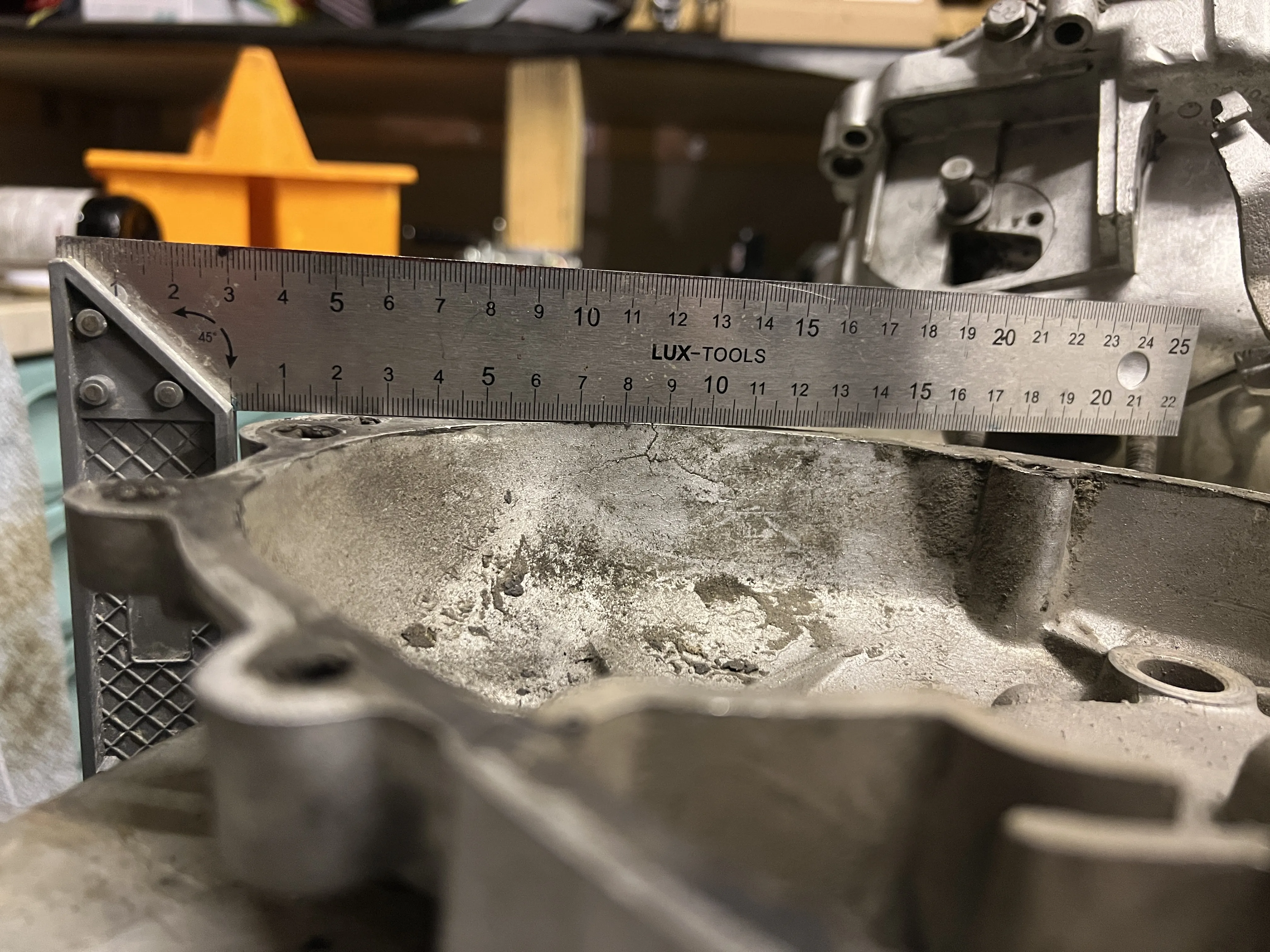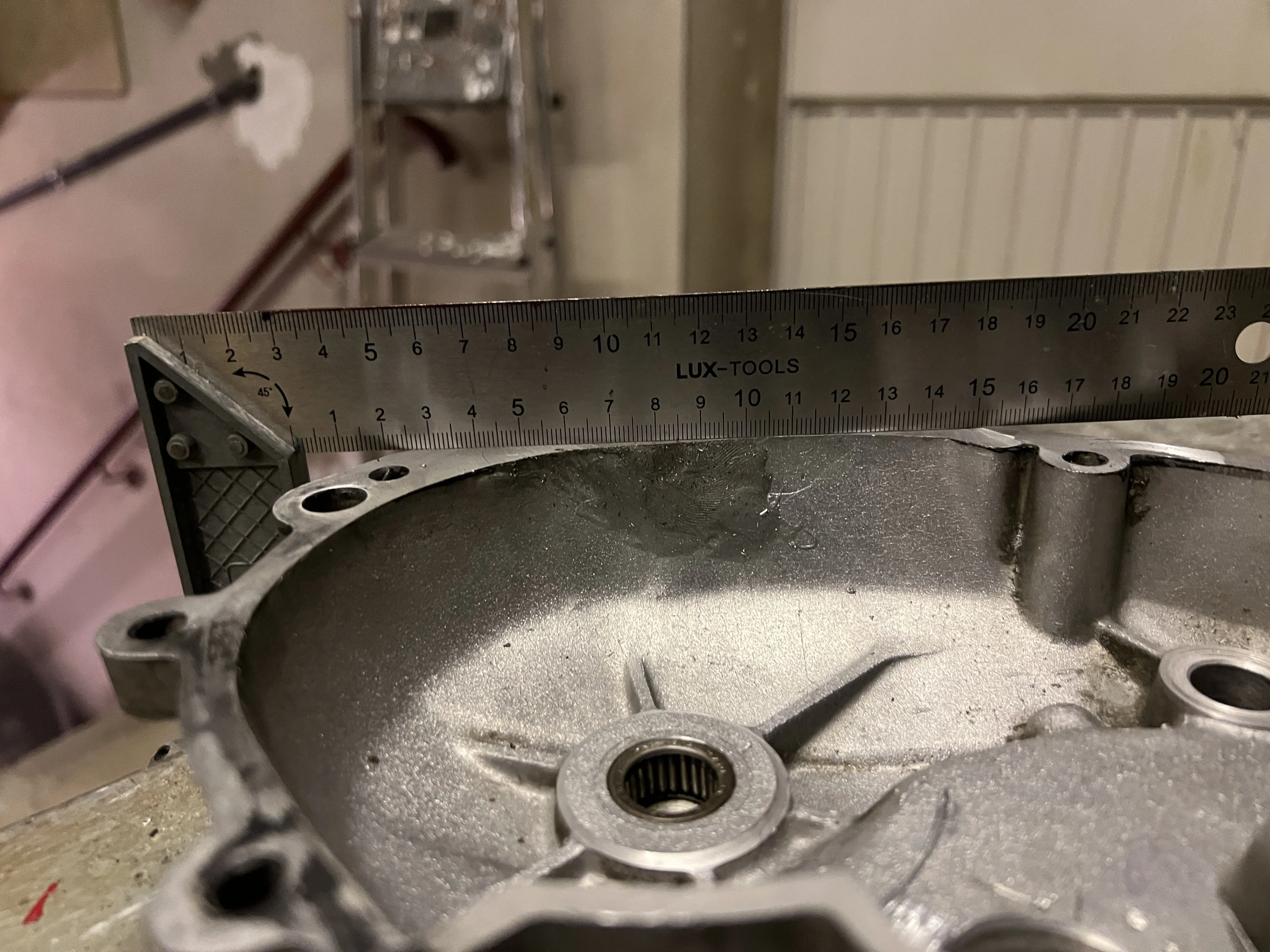 Jetzt war ich richtig stolz auf mich selbst, dass ich es in stundenlanger Arbeit zum ersten mal geschafft habe, das Gehäuse erst sauber zu machen und dann erst zu spalten, dann muss ich sowas sehen. Ich könnte 🤮. Ein Riss im Gehäuse. Im Bereich der Dichtfläche leider auch nicht mehr plan, sondern ein kleiner Knick drin.