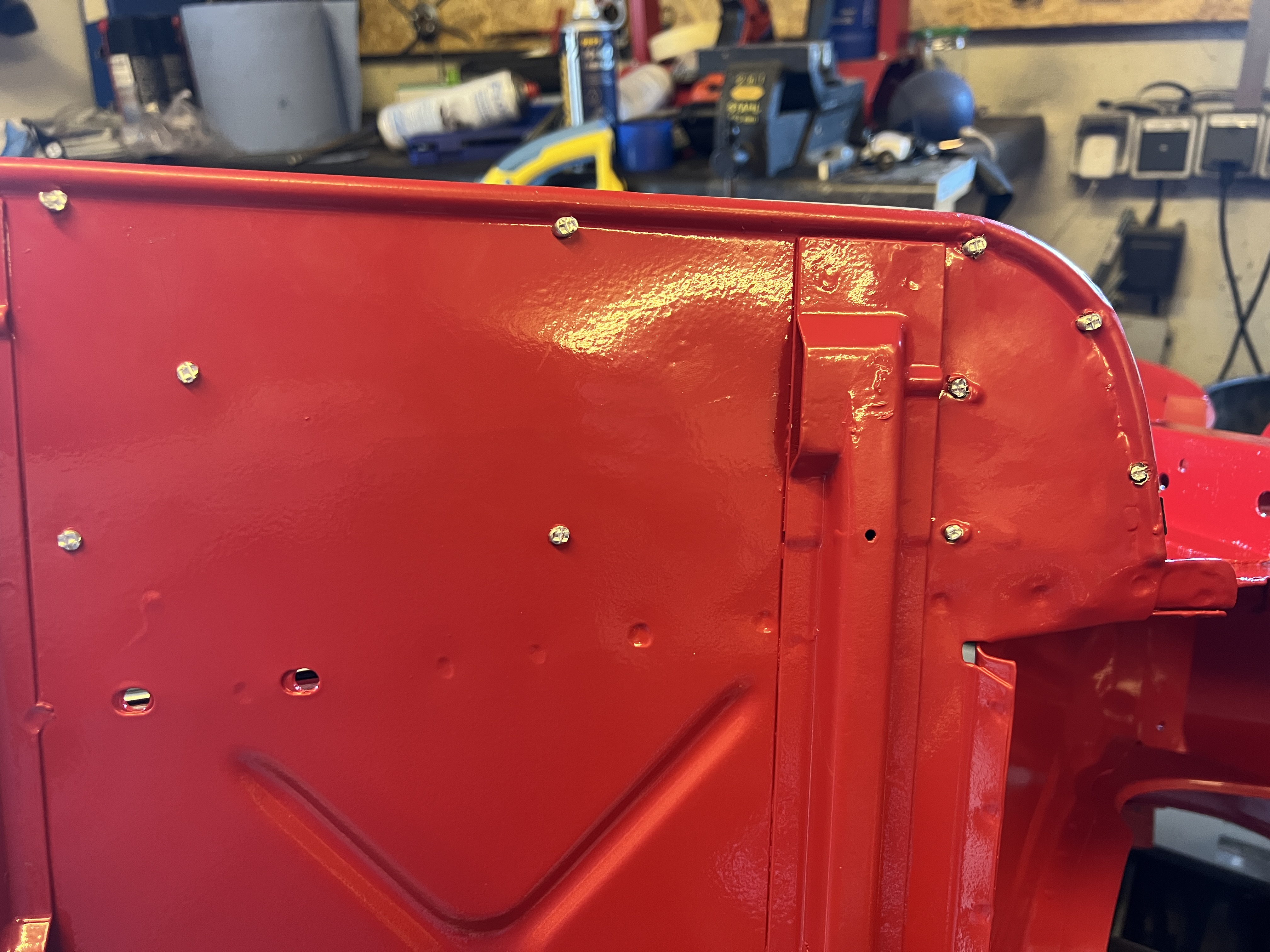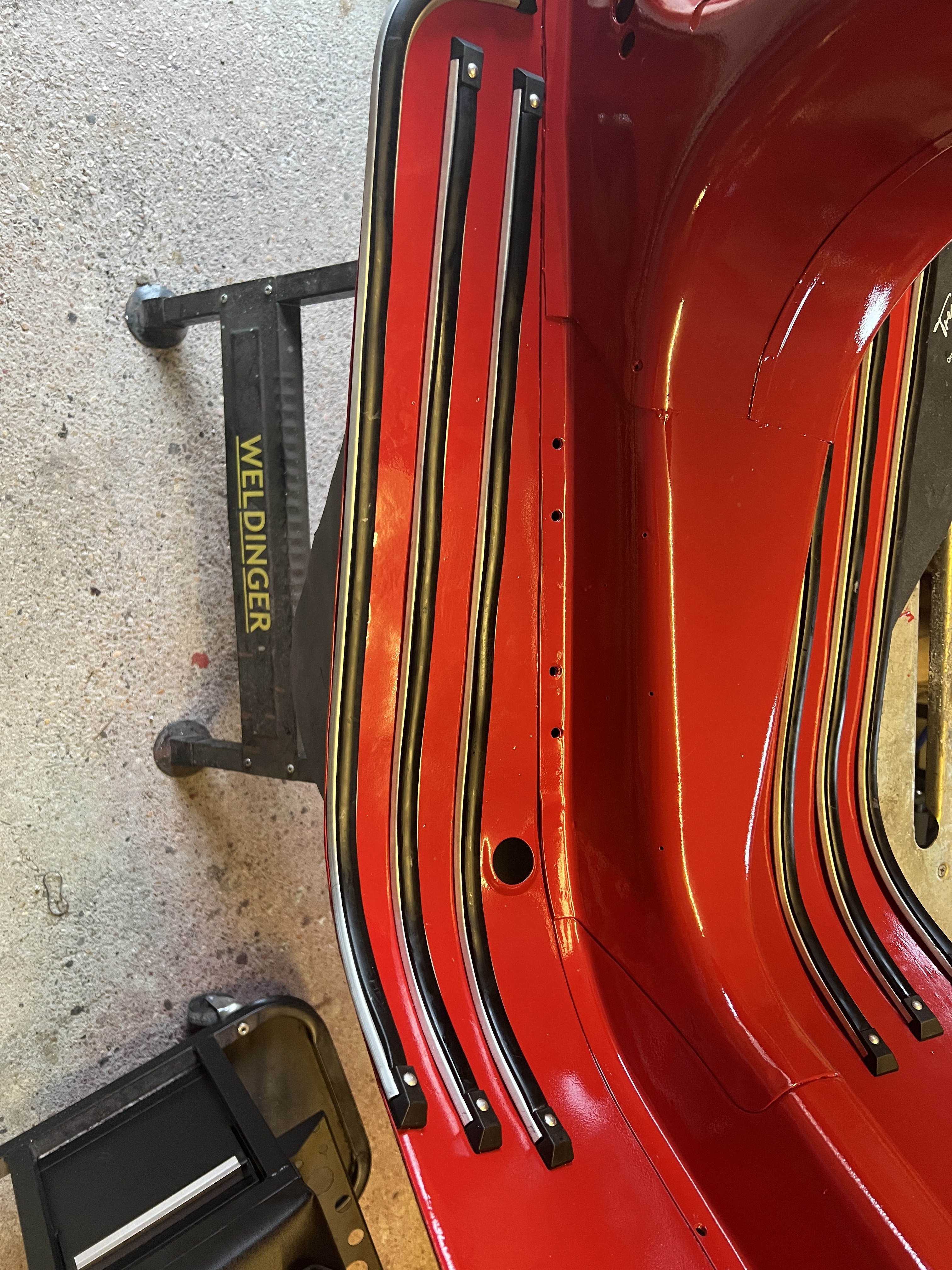 Backen schon mal probemontiert. Da fällt jetzt auf der linken Seite doch auf , dass ich nicht gut genug ausgebeult habe. Kleiner Spalt zwischen Dichtung und Rahmen. Was solls, für das erste Mal Blecharbeiten bin ich zufrieden. Denke, die Dichtung kann ich noch etwas zurecht drücken.
