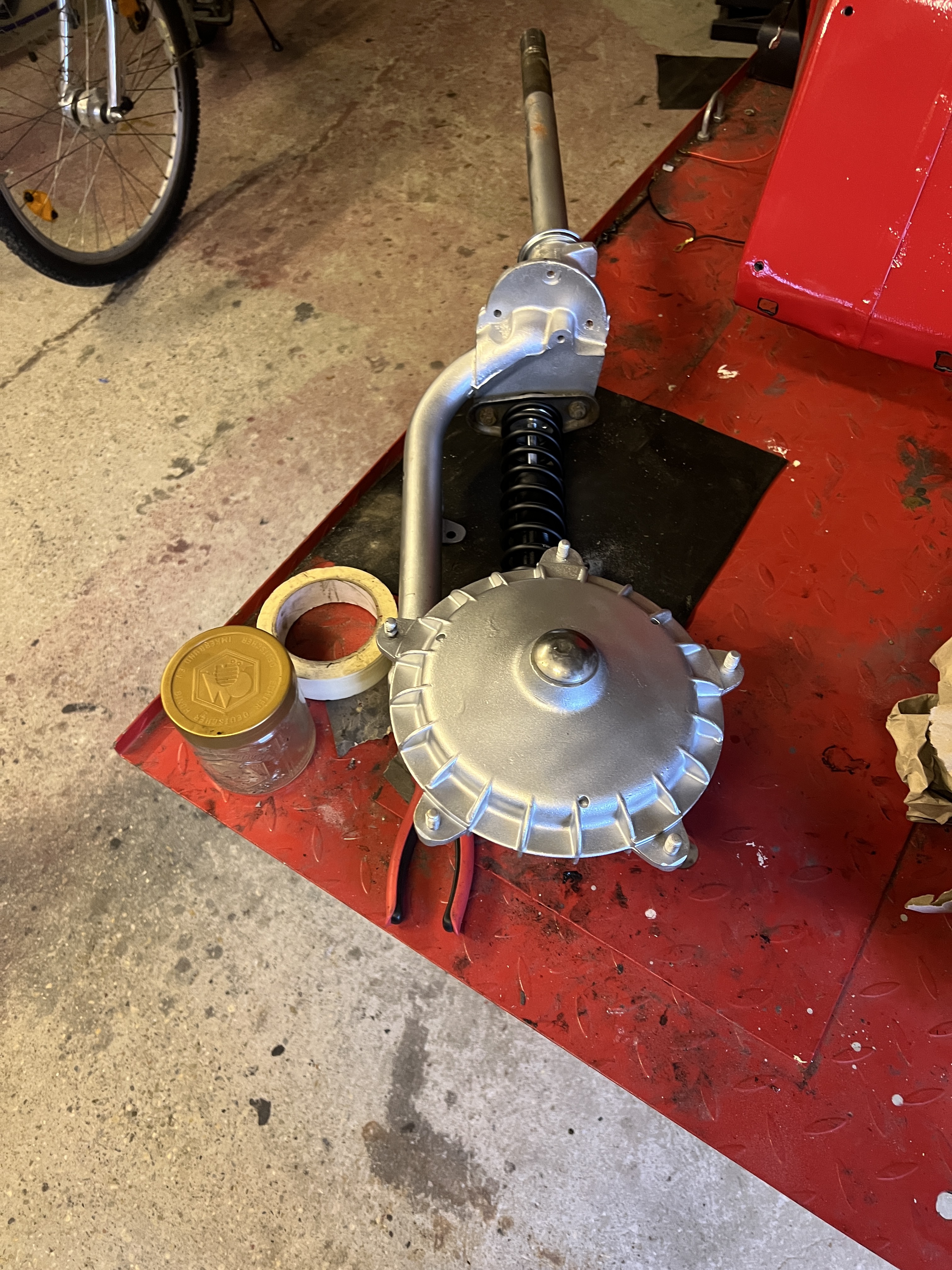 Nach einer Nacht in Motoröl und dann ein paar Stunden in den Resten des aufgefangenen Bremsenreiniger-Aceton etc. … Gemisches und dann wieder ein bisschen Kriechöl bewegt sich das Bremspedal jetzt wieder wunderbar und ich konnte es einbauen.