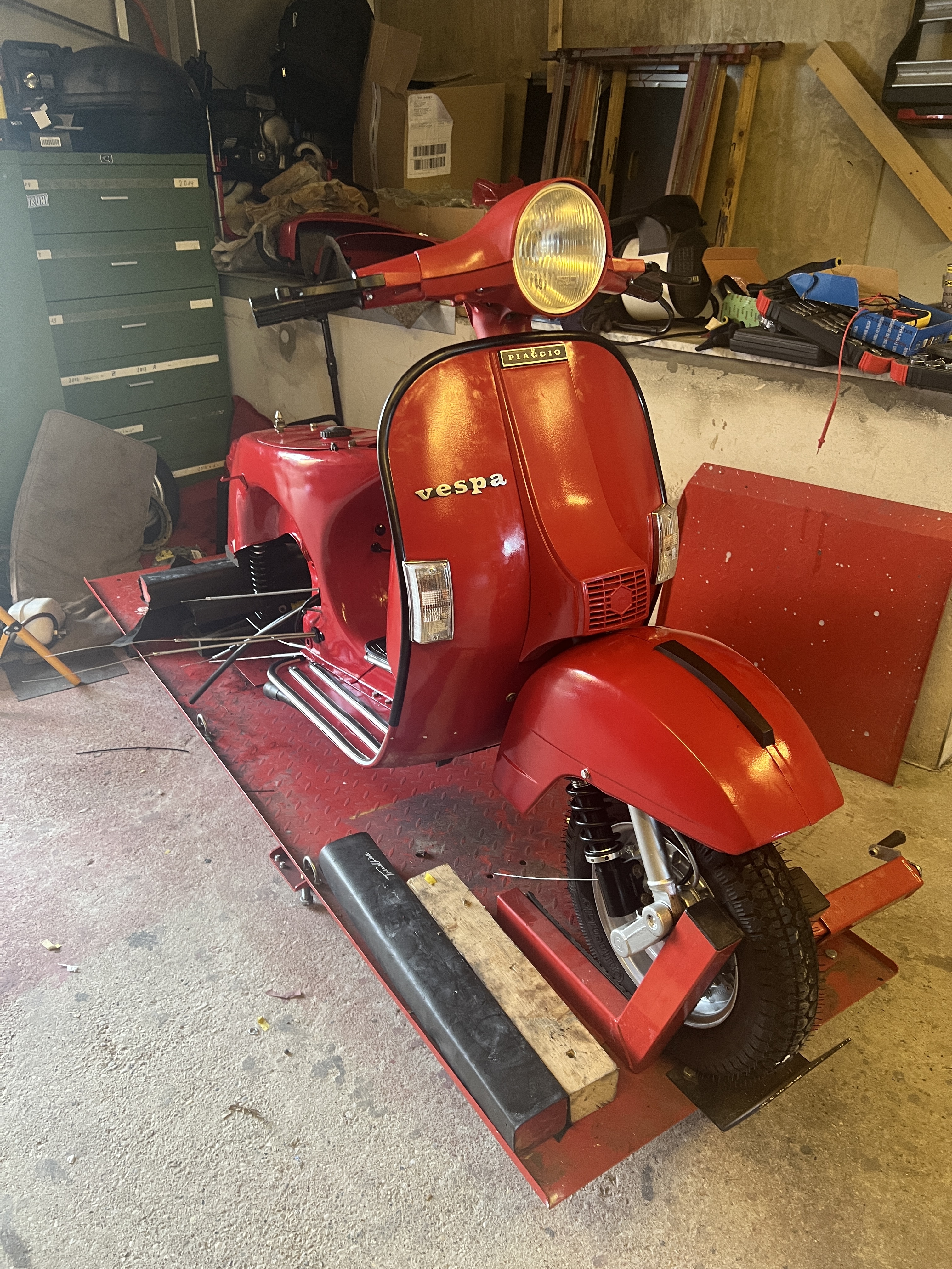 Mein PX Projekt hat sich nun ja auch über mehr als drei Jahre hingezogen, unterbrochen von langer Wartezeit bei Entlackung, dann Unlust auf Schaltvespa, dann kam ich 1 Jahr zu nix weil mein Schwiegervater rund um die Uhr Pflege brauchte. Dann konnte ich nicht lackieren, weil zu kalt …