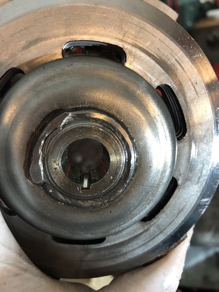 Auch als ich den Abzieher für den Kupplungskorb eingedreht habe, hab ich gemerkt, dass dort Metallgebrösel war. Ist da was geschweisst worden an dem Korb, oder sieht der normal so aus?