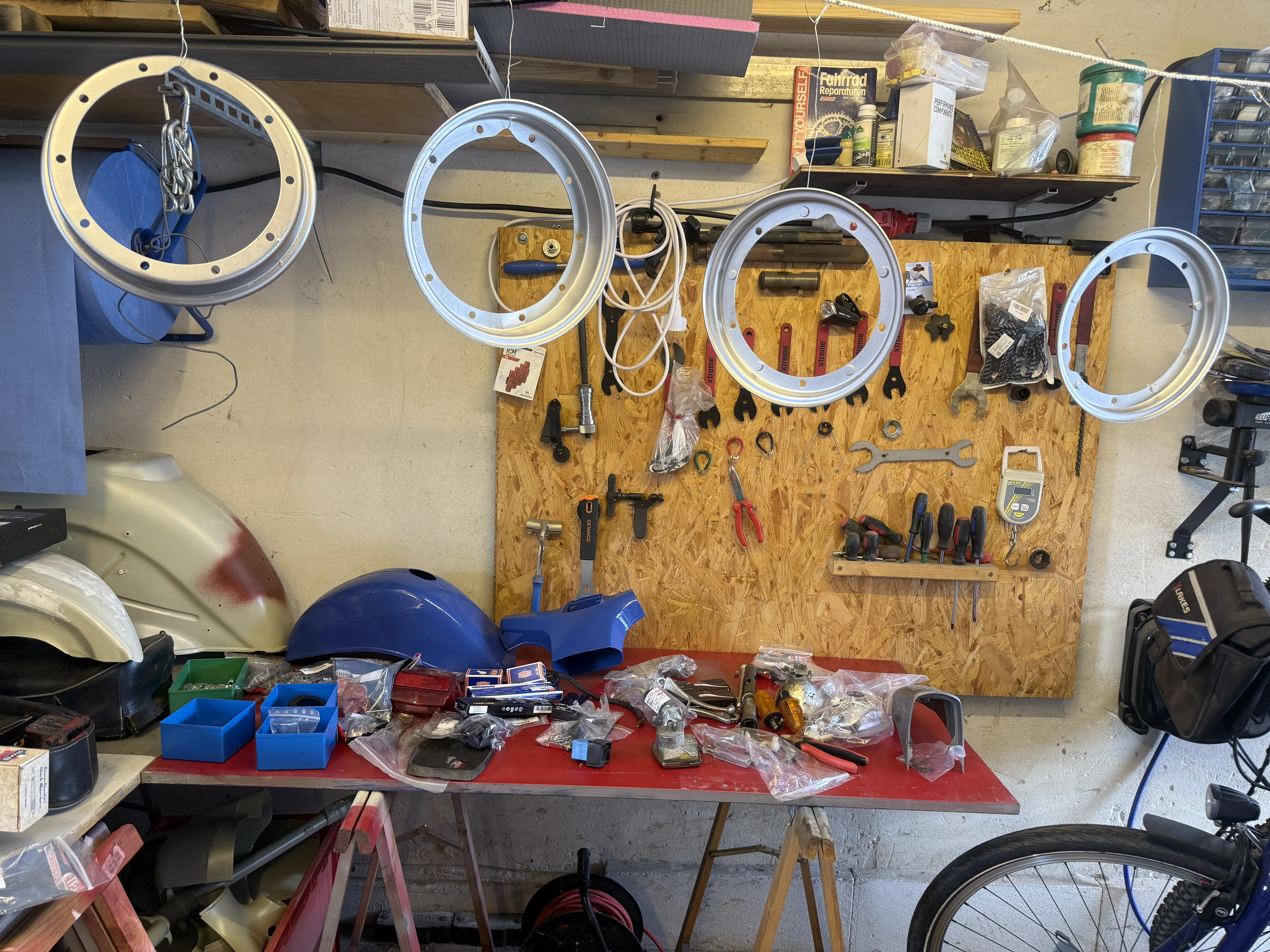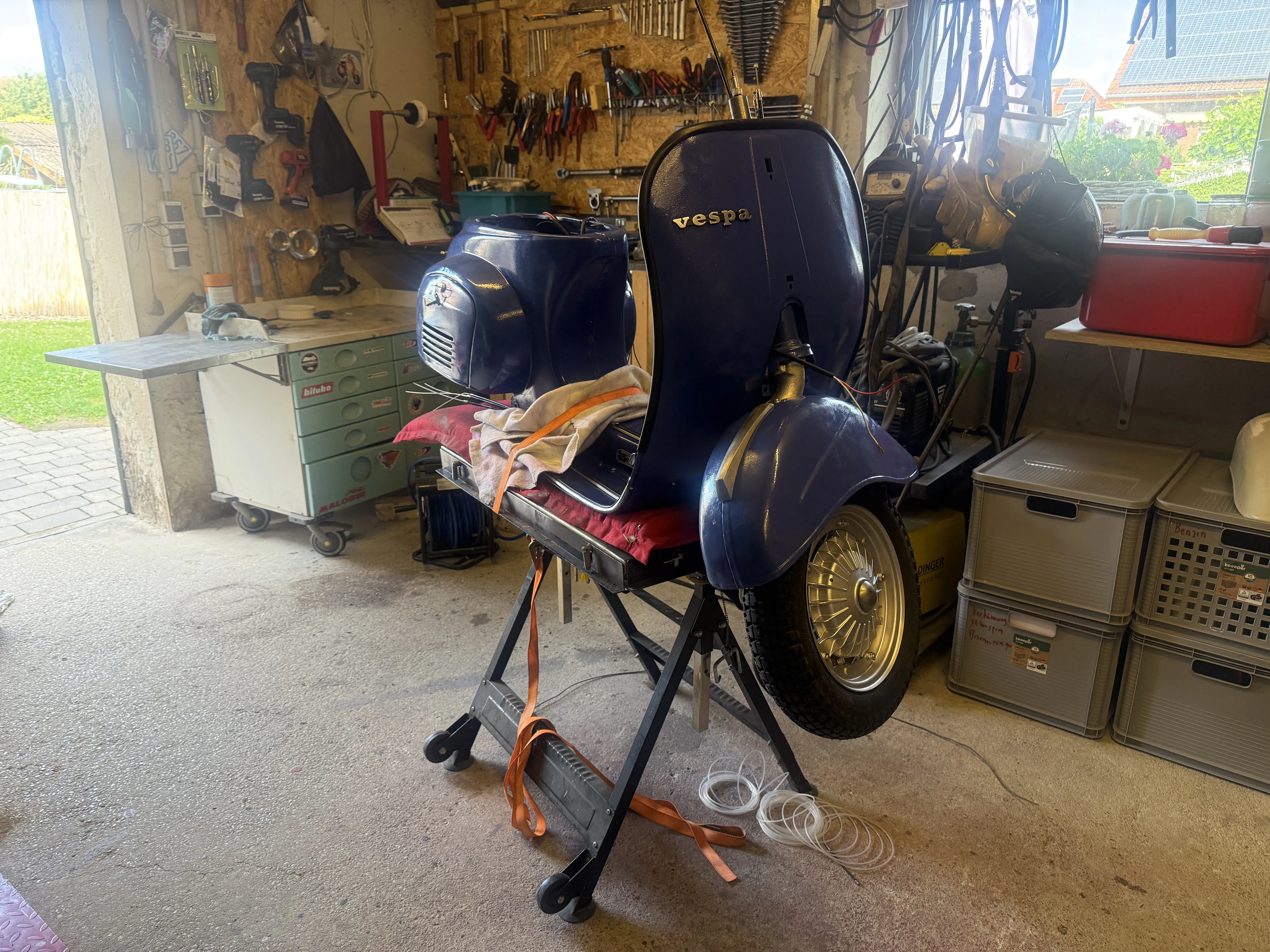 Jetzt musste ich kurz fremdgehen. Hab beim Heinkel den Schaltgriff und die Schaltzüge gewechselt. Endlich schaltet das Ding vernünftig, insofern man bei Heinkel überhaupt davon sprechen kann. -