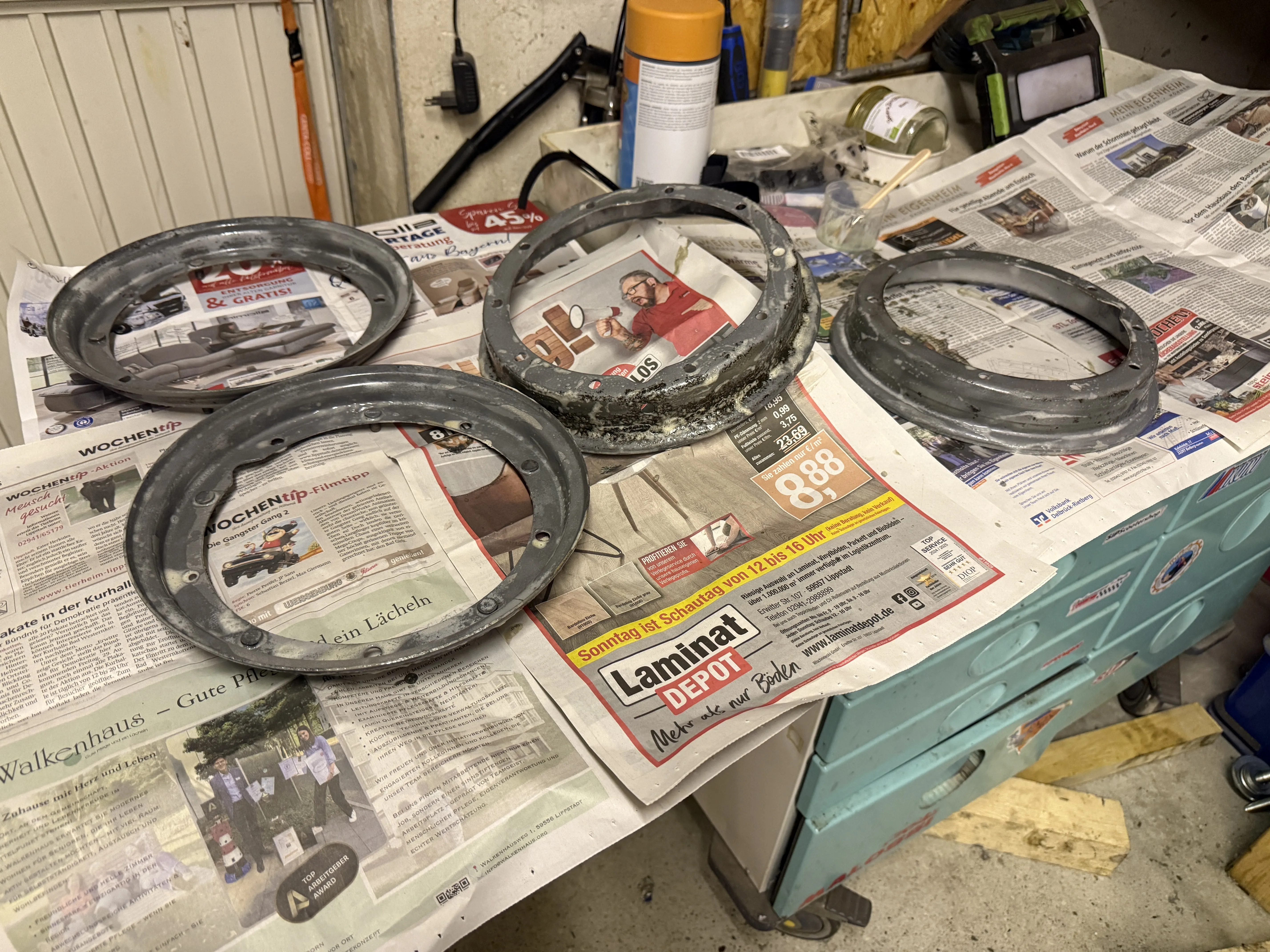 Heute dann die Felgen gestrahlt und gerade mit Pelox RE behandelt.