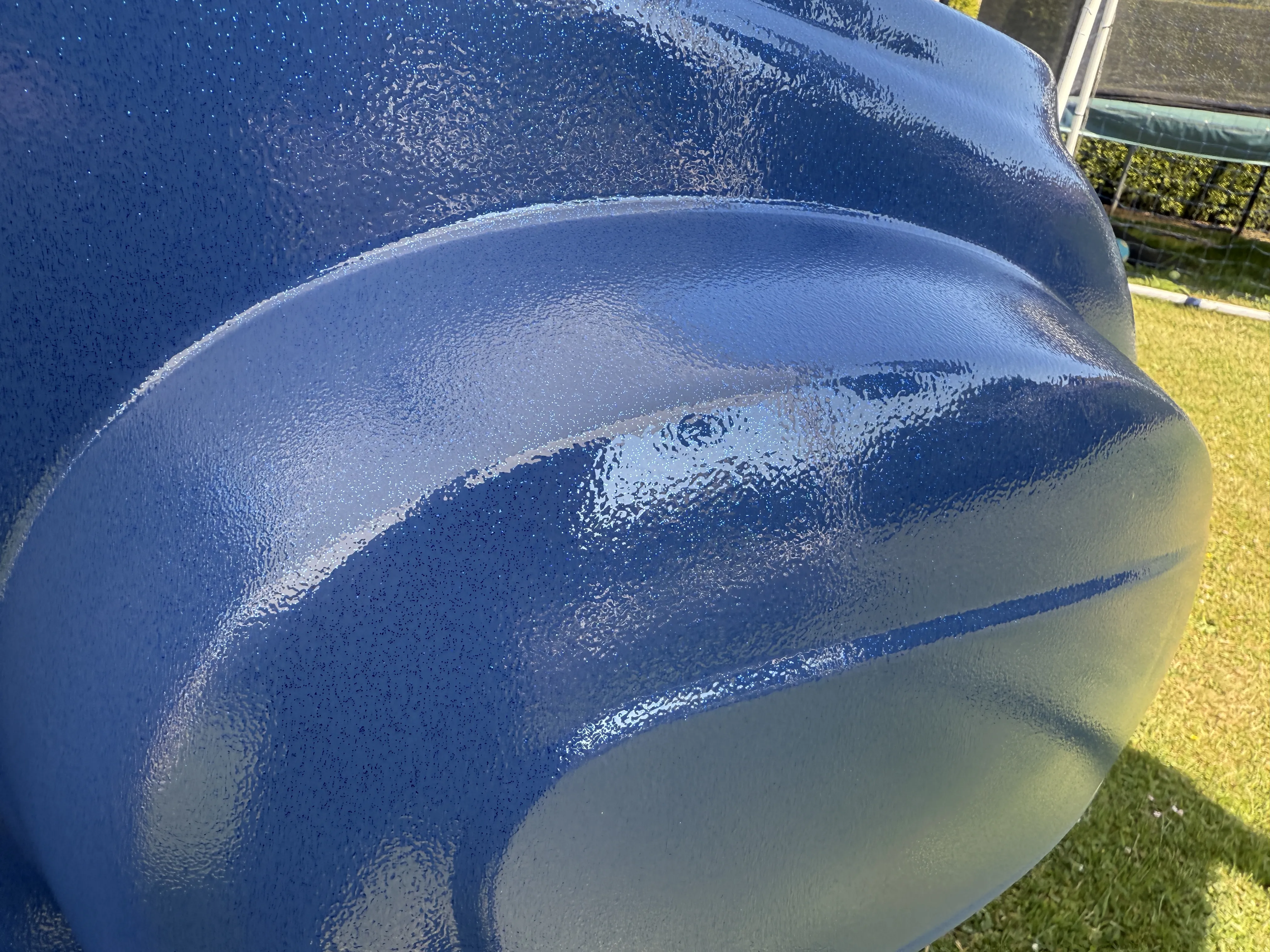 Hab gerade nach dem Trocknen noch mal Fotos gemacht. Das kommt da leider durch die Reflexionen vom Sonnenlicht tatsächlich so rüber wie Orangenhaut. Ist es aber nicht. Hier mal eine Stelle, wo es auf dem Foto nicht ganz so wirkt