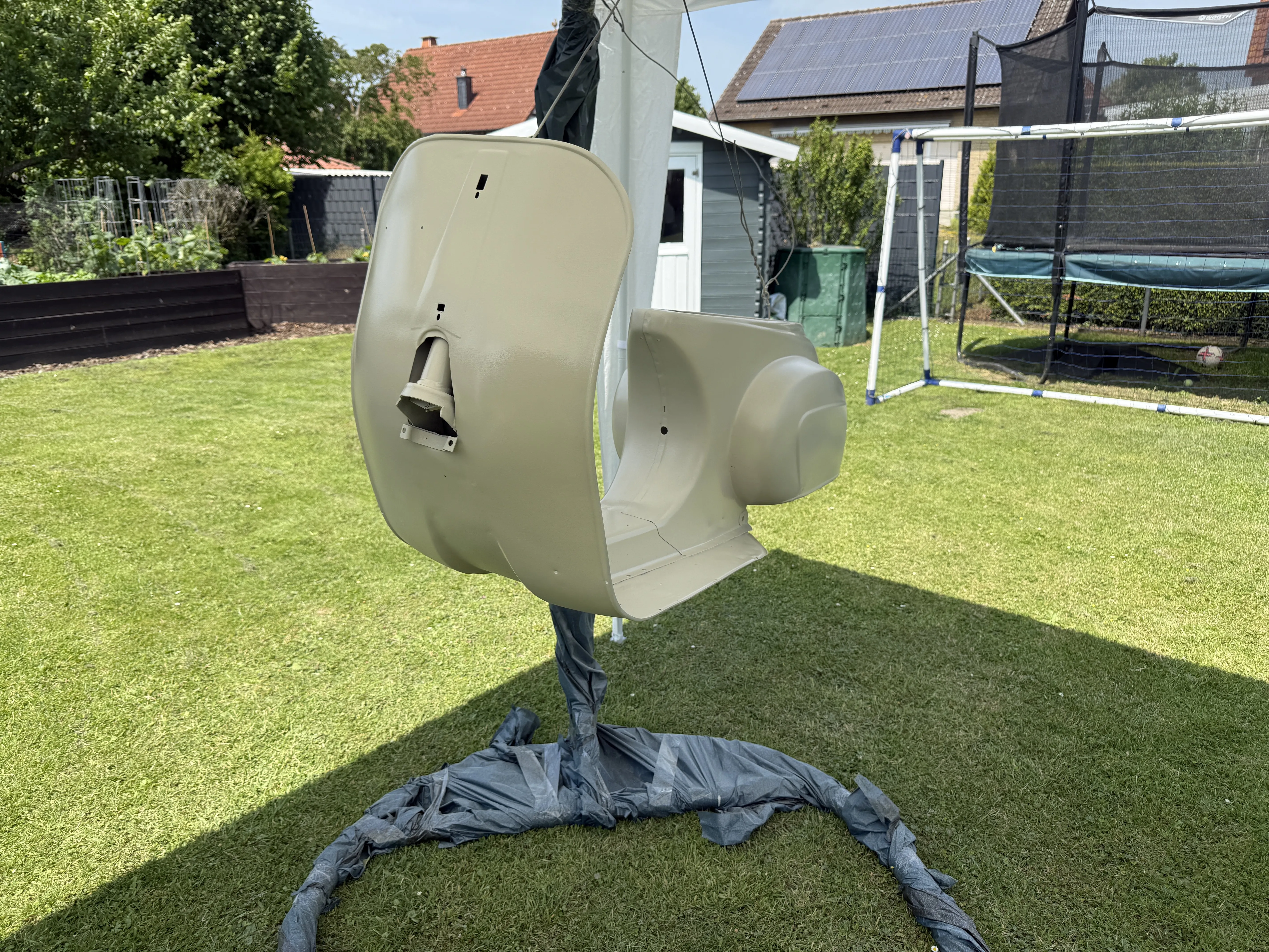 Den Versuch, das noch mal zu schleifen und klarlackieren, habe ich gleich nach der Seitenklappe beendet. Hat keine Verbesserung gebracht.