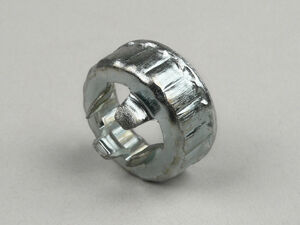 Normalerweise haben die Achsen vorne ein Loch, durch welches ein Sicherungsring gesteckt wird, welcher dazu dient die 22er Mutter zu sichern!