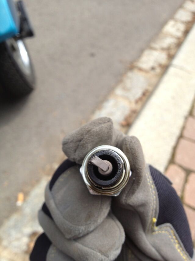 Zündkerze im Anhang. Sieht doch gut aus, oder? Schwarzer Ring, helle Mitte.