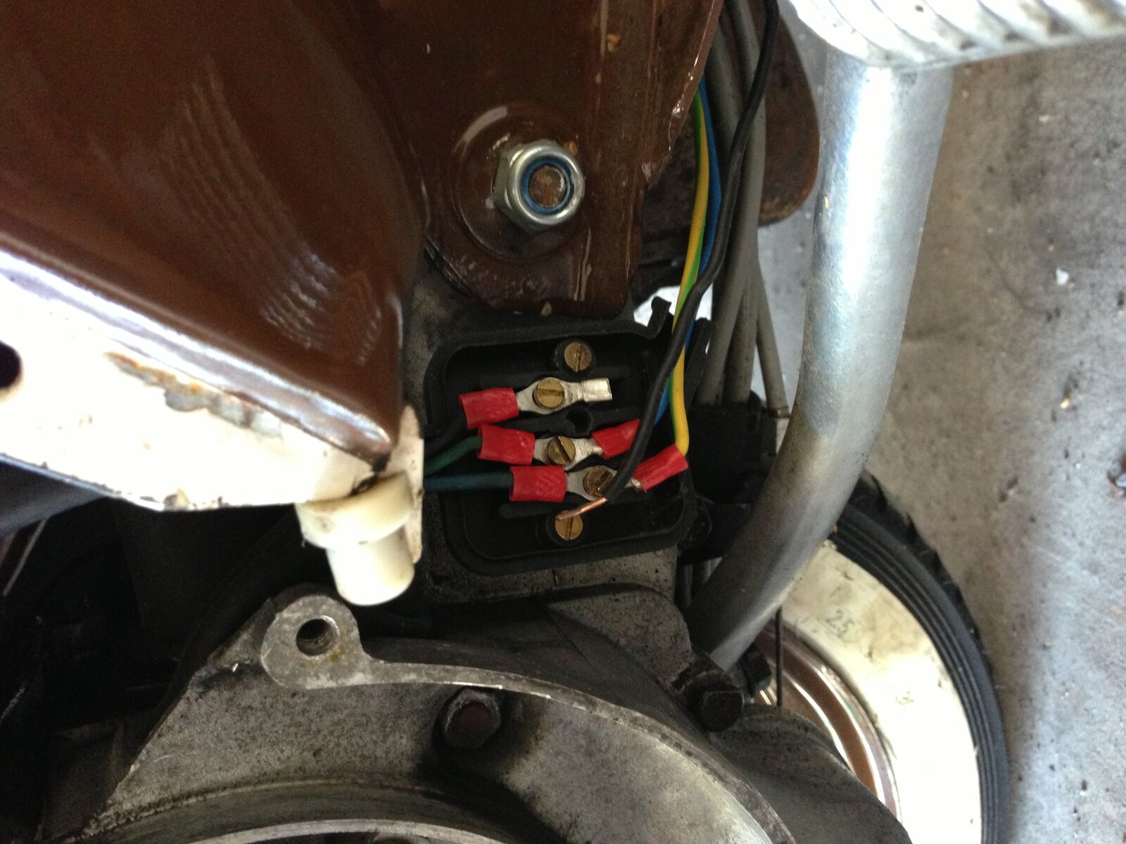 Motor muss ich gleich nachschauen, Fahrgestell ist die v5b3t. Die gab es in Deutschland ja auch mit 4fach Blinker und so. Mein Vorbesitzer hat bei seiner Restauration einen neuen Kabelbaum eingezogen, aber ich halte nicht viel bin seinen Künsten, Benzinschläuche waren überall mit Kabelbindern befestigt, den Gaszug hält am Ende eine angebrochene Lüsterklemme. Unterm Sitz ist der spannungsregler, ein Relais hab ich bis jetzt noch nicht gefunden.