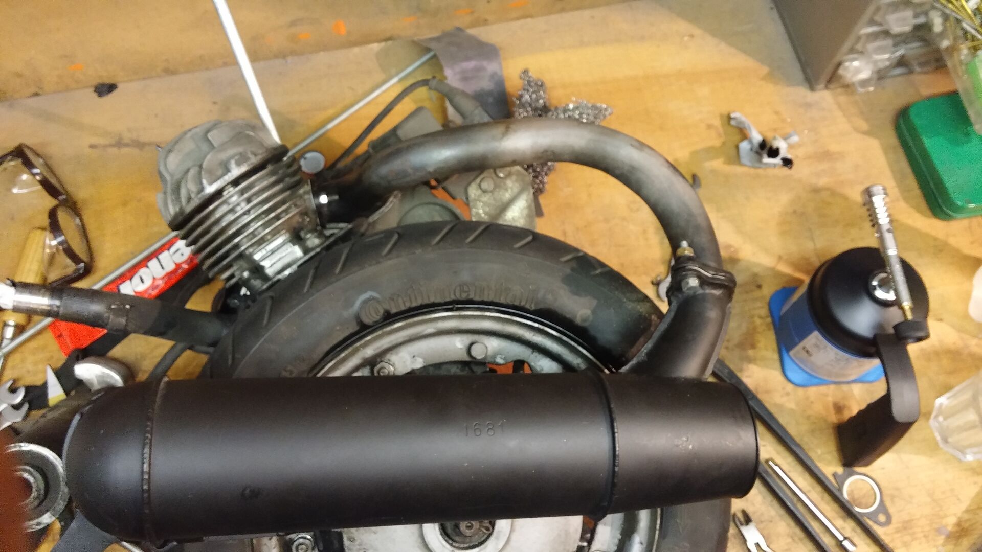 Der Auspuff passt schon. Schaue dir mal das Bild auf Seite 2 von meinem Thread an. Ich habe den Auspuff dementsprechend eingesägt und dann wieder verschweißt.