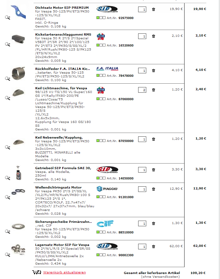 dazu habe ich beim scooter center ein komplettset gefunden, wo laut deren angaben alles drin ist, was gebraucht wird. da ich nicht vorhabe das ganze im nächsten jahr zu wiederholen, wollte ich mal fragen wie die qualität der teile ist.