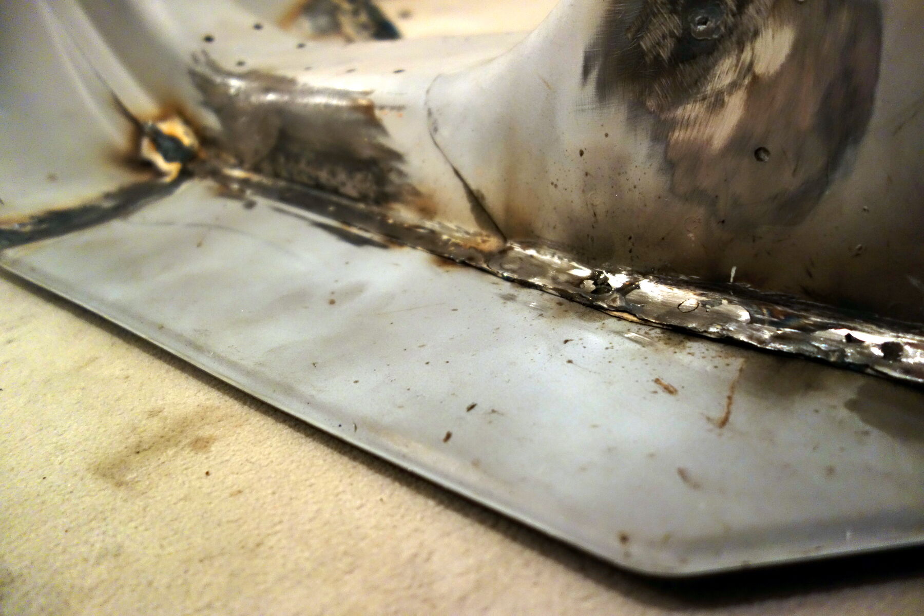 Da der Vorbesitzter schon mal ein Stück Blech auf die Falz nähe hinterbacken "gebrutzelt" hat, sieht die hier sehr wild aus.