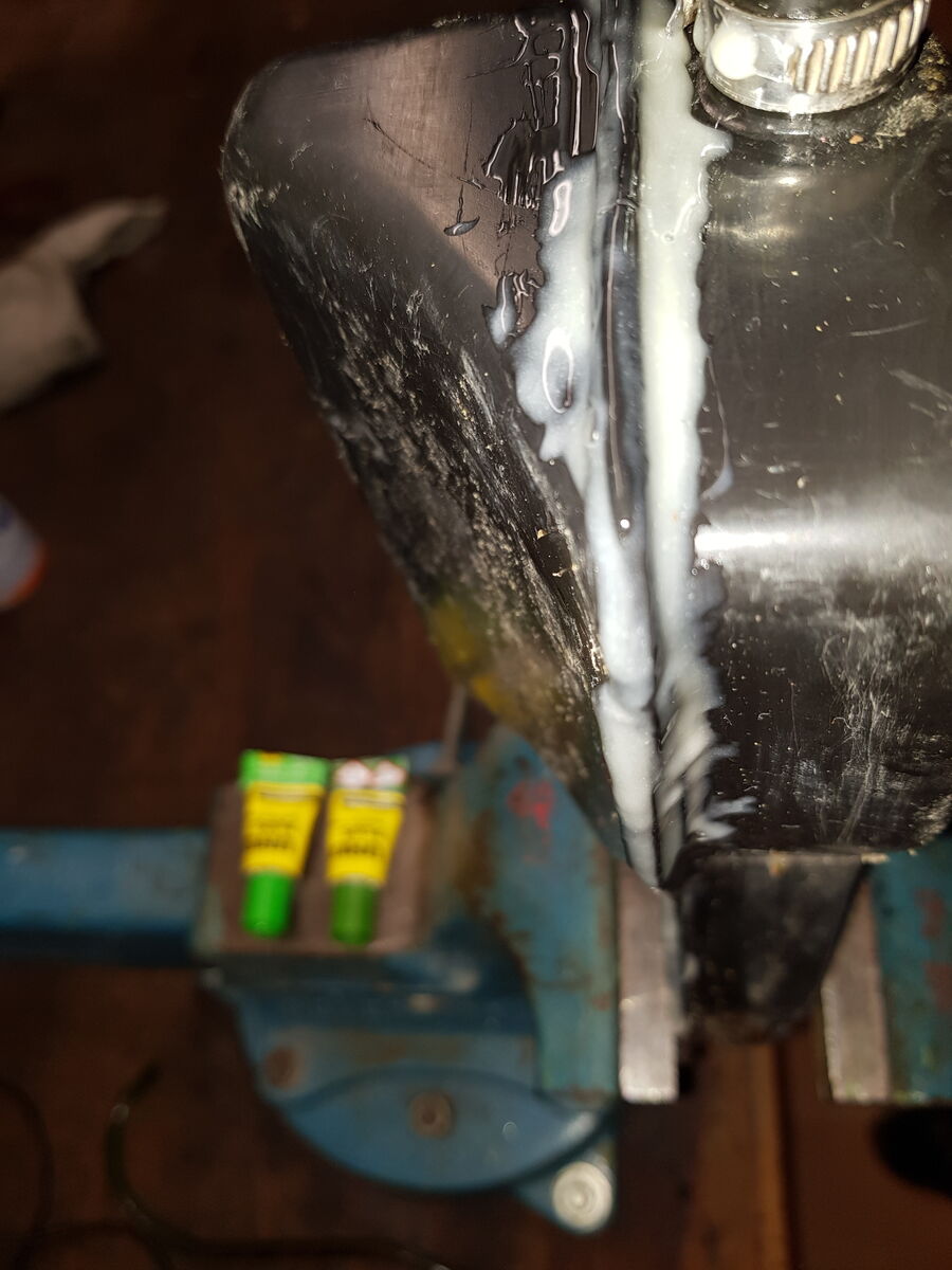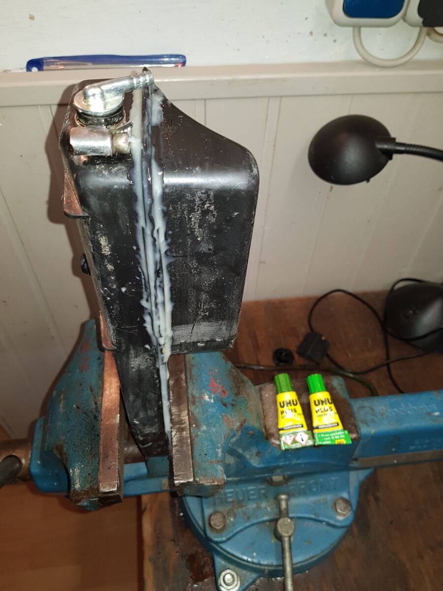 So hab ich meinen Öltank repariert. Der Kleber ist Öl und Benzin fest. Hab ich auch schon einen Schwimmer im Tank mit gelebt. Hält super das Zeugs.