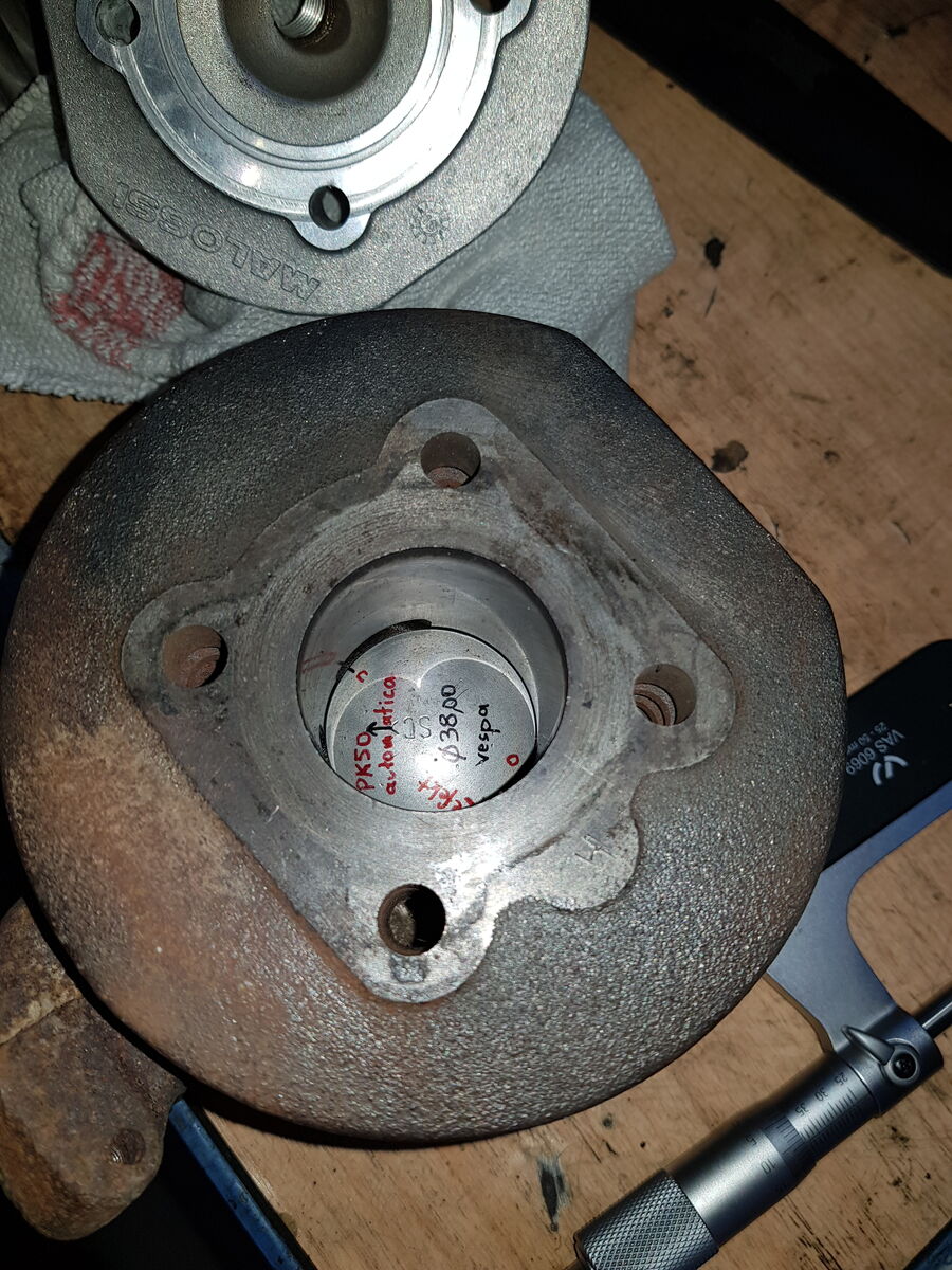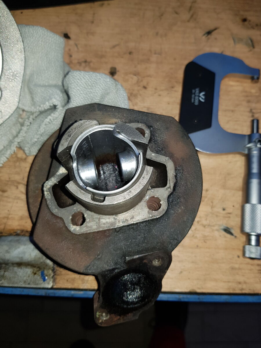 So, ich hab den Zylinder mit Natronlauge von Aluresten gereinigt, neue Kolbenringe montiert und den Kolben mit feinem Schleifpapier etwas bearbeitet.