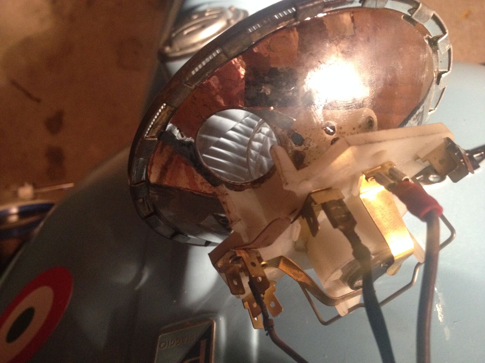 Das geht schon im Scheinwerfer los. Da fehlt nicht nur eine Lampe, es kommt auch ein Kabel weniger an als auf den Schaltplänen zu erkennen und die Lampenfassung wurde "modifiziert", sprich halb abgeschnitten .