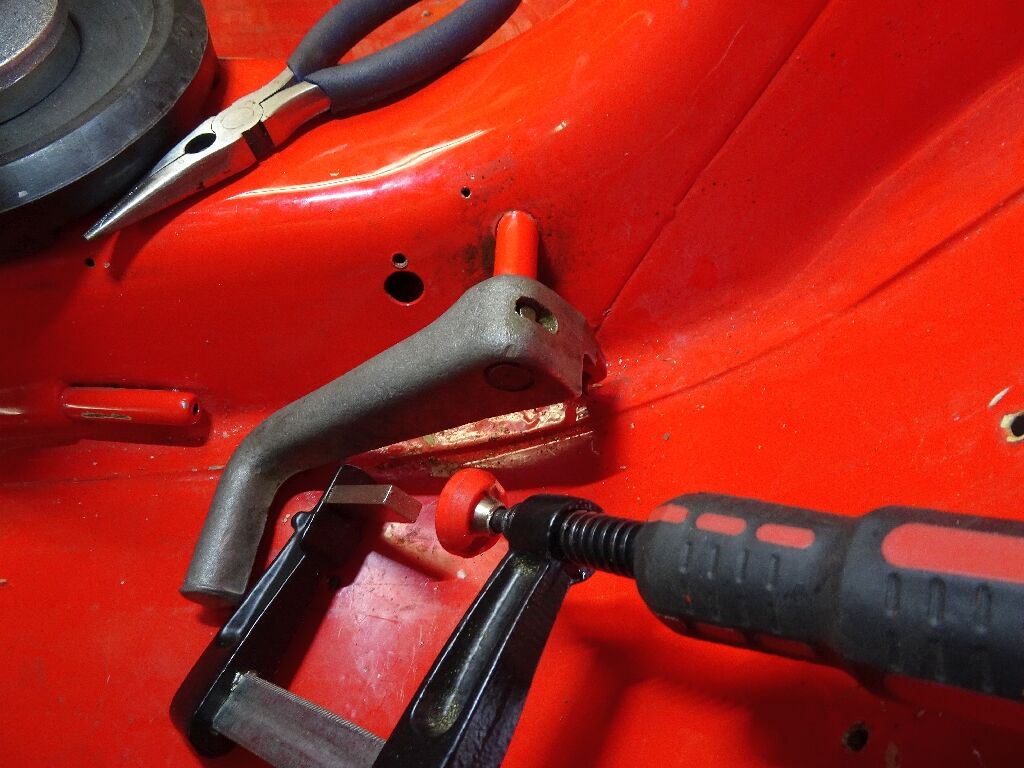 Man findet zwar einige Tipps im Internet, aber wirklich brauchbar ... naja.. also ich habs in erster Linie mal mit Kriechöl probiert, dann mit irgend so einem Rostlöser-Spray dann mit einem Heissluft-Föhn, Hammer, usw.. irgendwie ging nix.Dann kam mir die Idee, dass ich irgendwie mehr Druck brauche, so hab ich mir eine Schraubzwinge geschnappt, und ein kleinen Magneten, der noch zwischen den Bremshebel passte (von unten) Damit konnte ich den Bolzen dann soweit rausbekommen, dass ich mit einer Spitzzange, und Beisszange den Rest erledigen konnte...