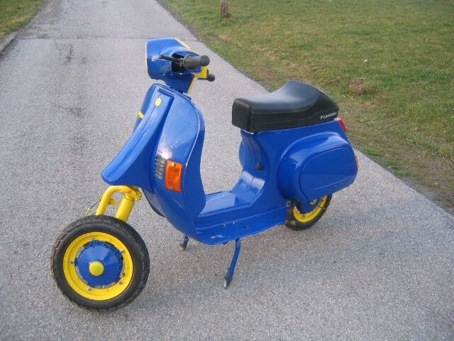 Hallo, ich finde, dass die original Vespa Kotflügel zu groß sind. So Kleinigkeiten wie Chromgriffe kommt alles noch.