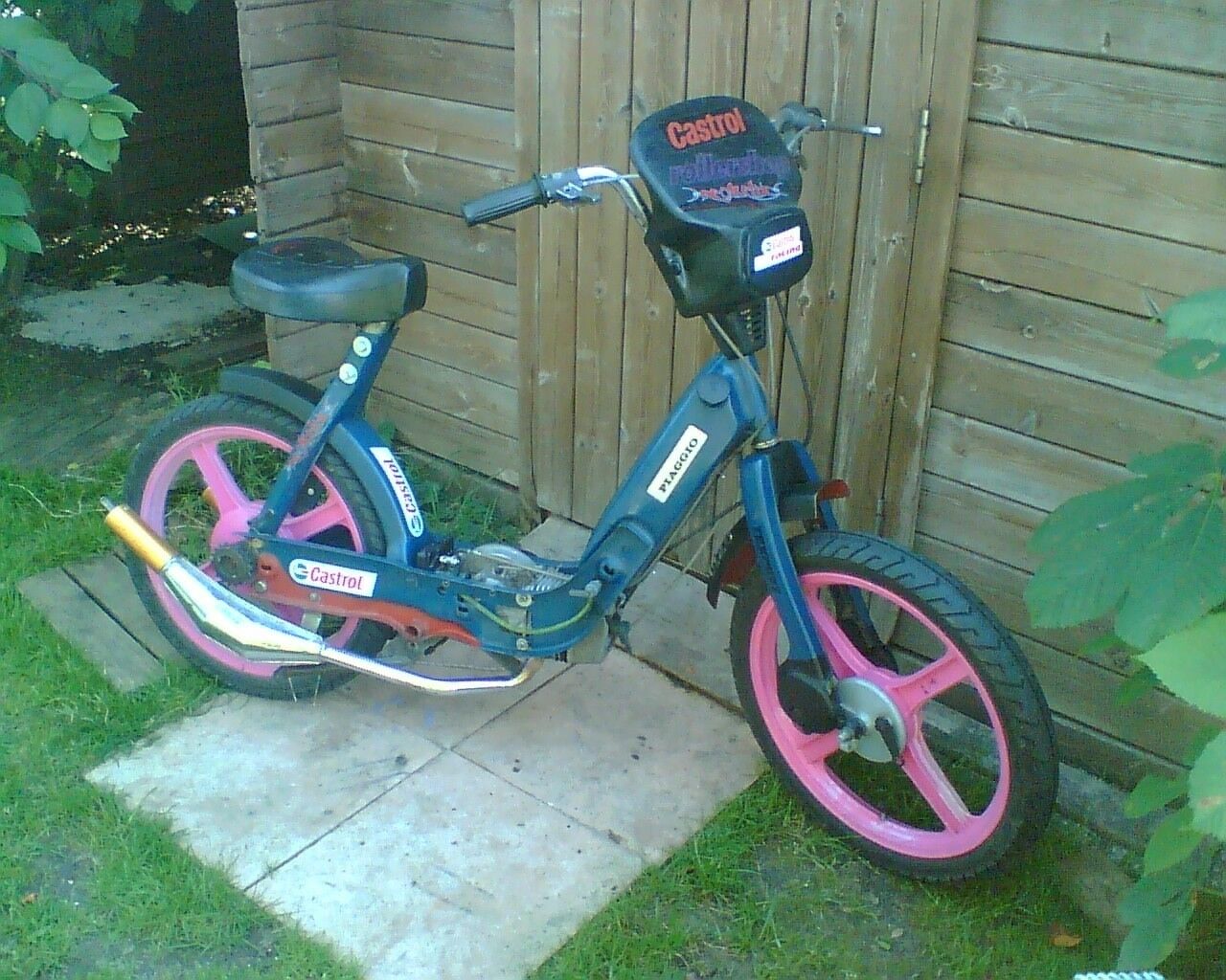 ( natürlich Piaggio Ciao ca. 6 Stück!! ). Ich habe zwei übelst getunte Ciaos die ich selber aufgebaut habe. Ich habe ausserdem noch eine Ape 50 die ich zur Zeit restauriere. Und natürlich habe ich auch Vespas. Eine PK 50 S und eine PK 50 XL mit 85ccm ( bald 133ccm ). Die XL wird nächste Woche schwarz lackiert.
