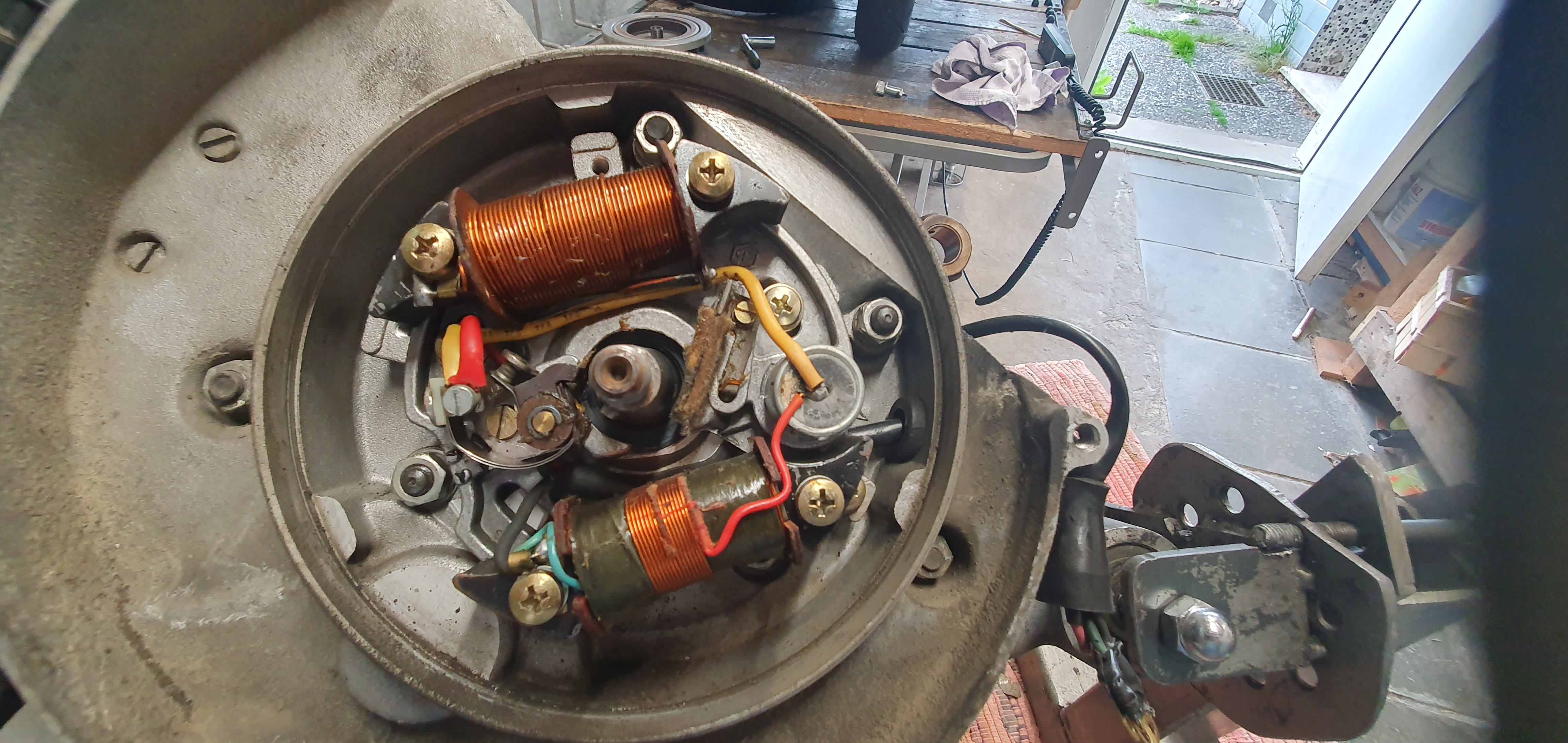 Vor mir liegt ein Motor auf der Werkbank.