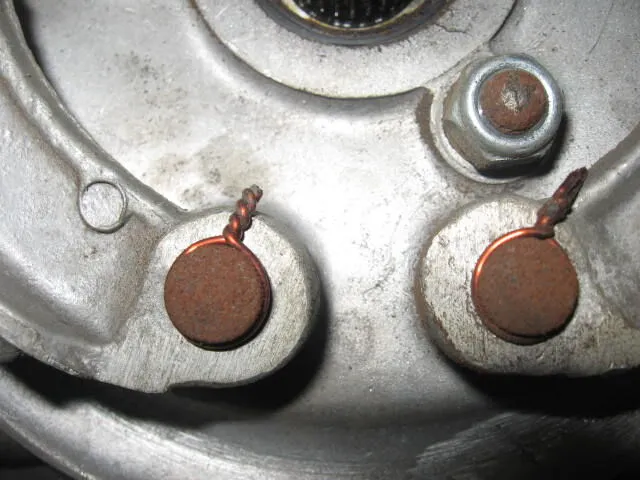 Draht als Sicherrungsringe um die Bremsbeläge getüddelt, um den Bremsarm(warum auch immer eine dicke Drahtschicht)!