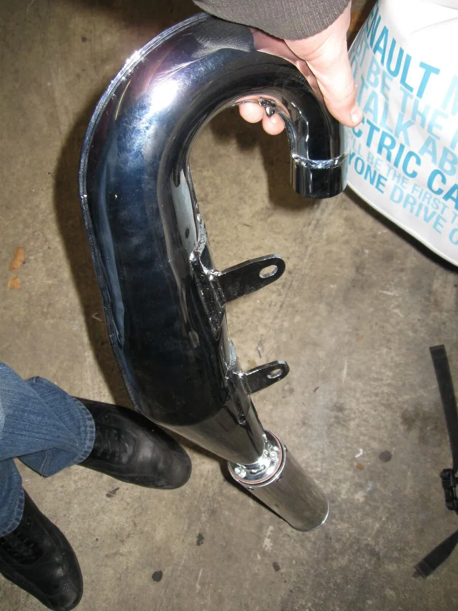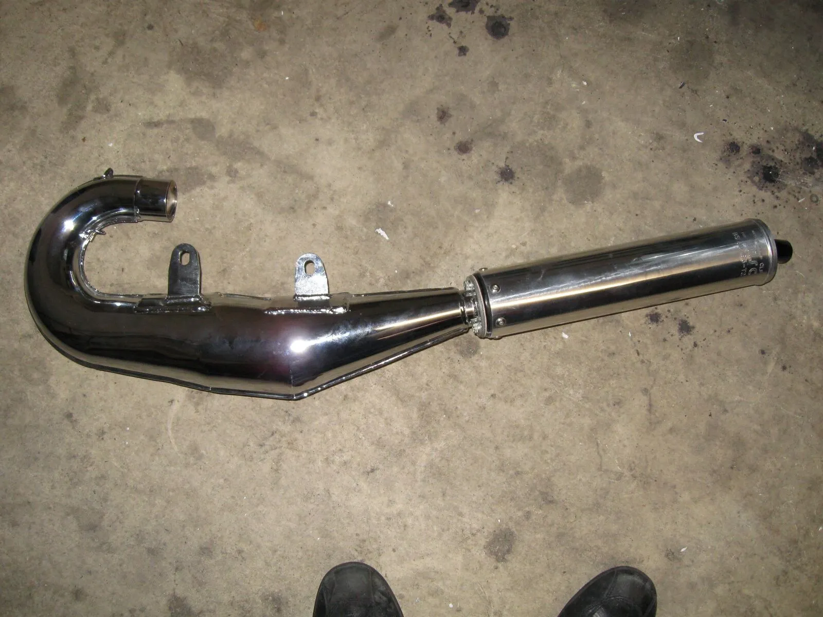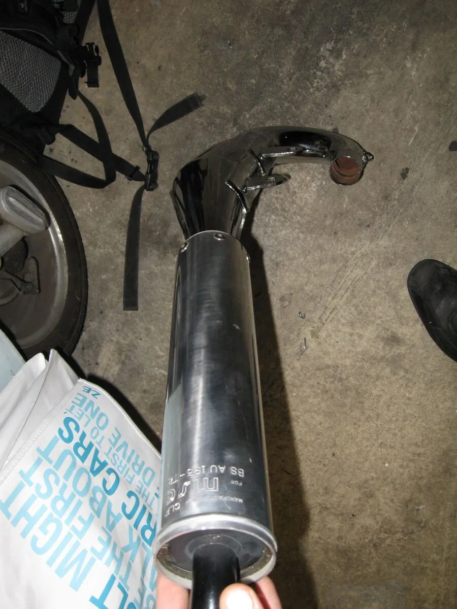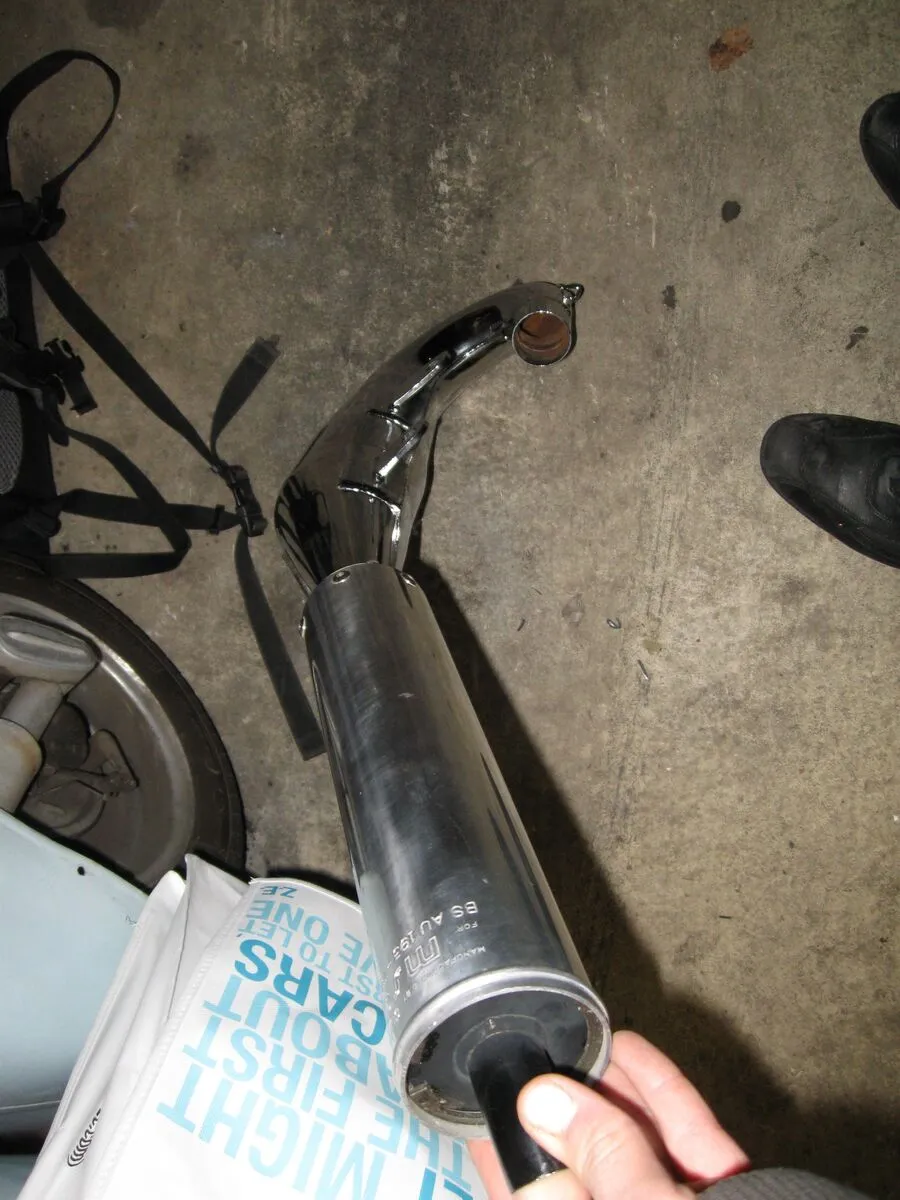 Das ist ein Micron Auspuff, hergestellt für Midland Scooter Centre in Nottingham. Müsste die Ausführung mit dem leisen mechanischen Dämpfer sein.