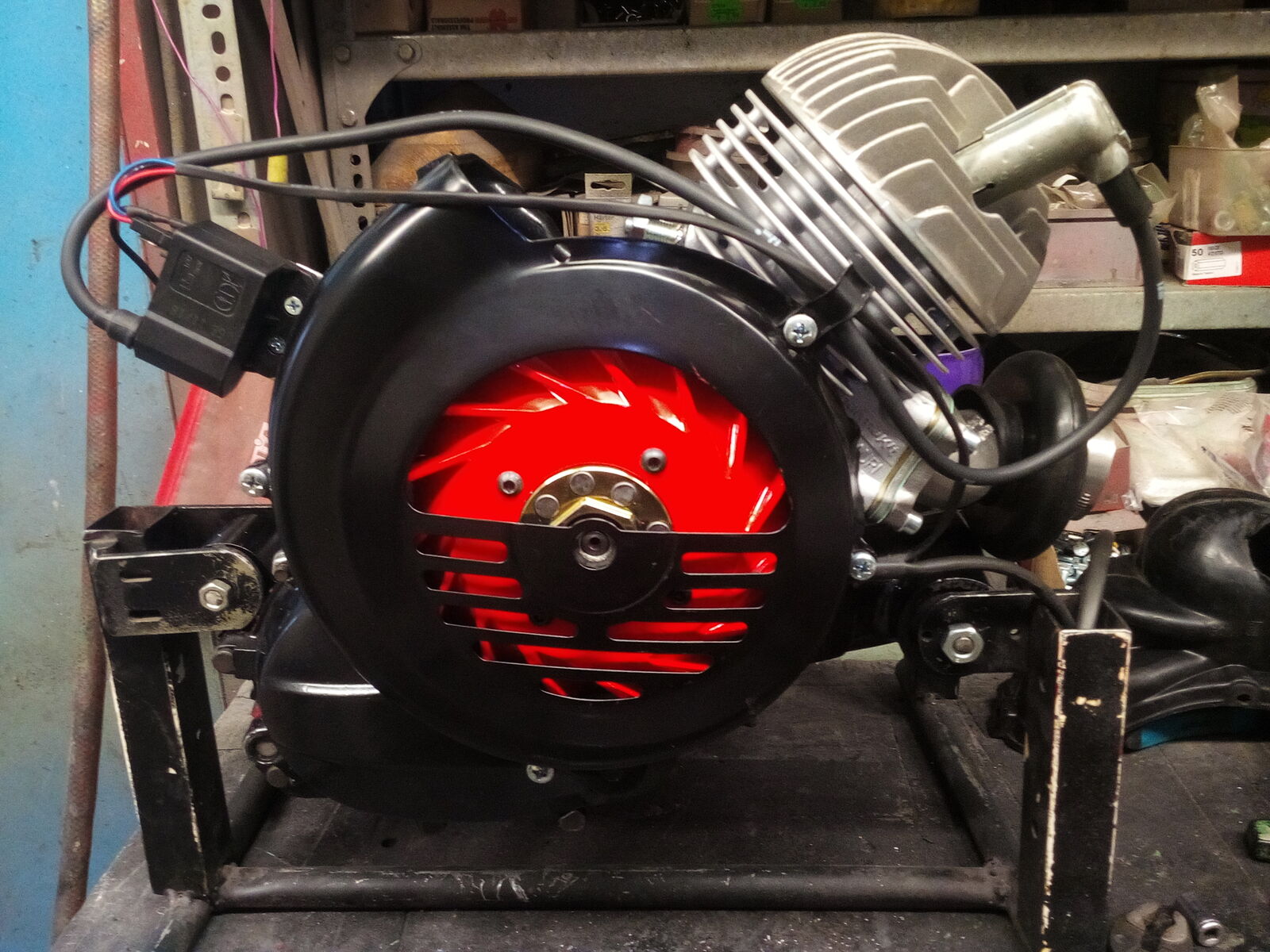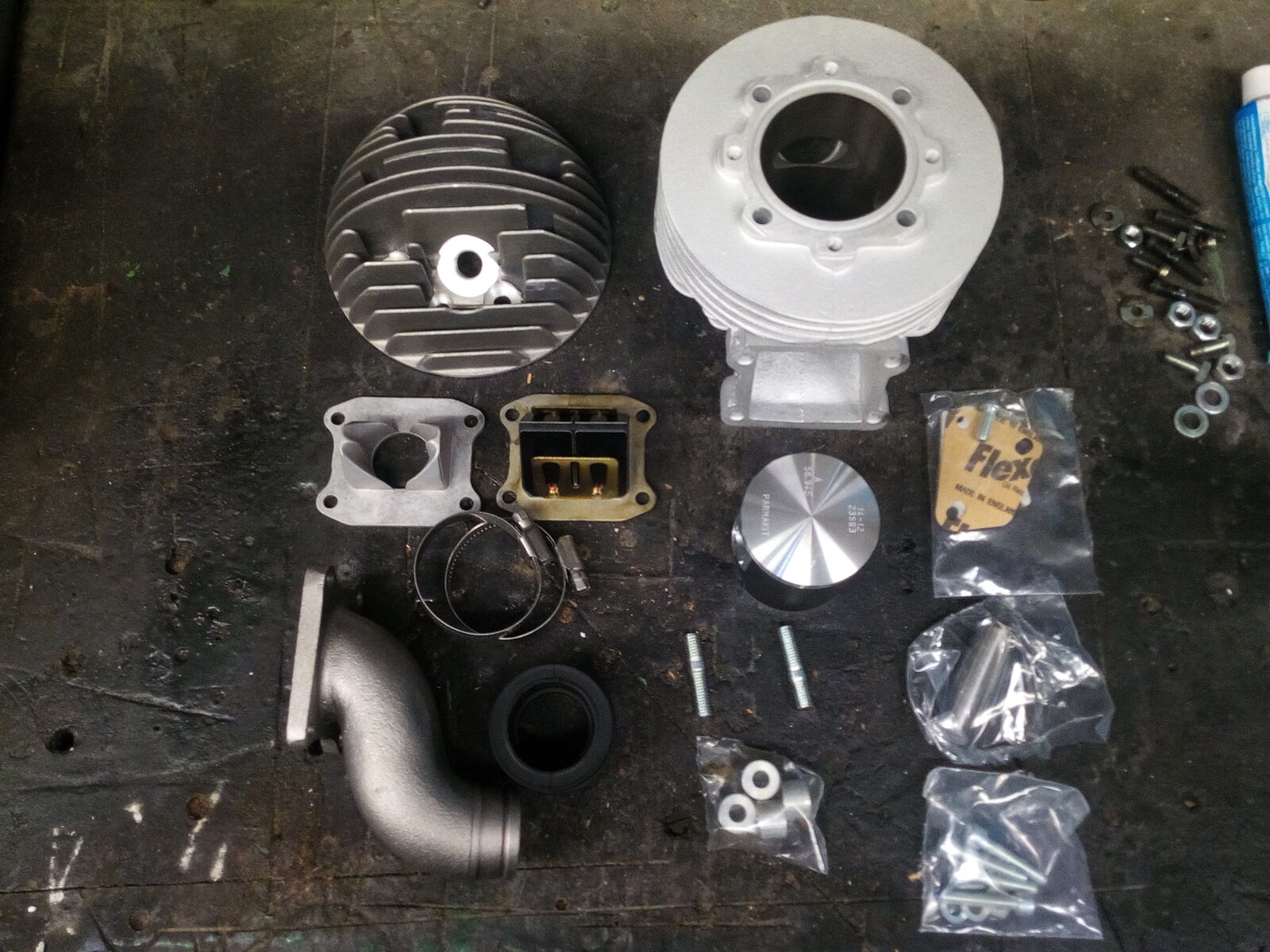 Verbaut ist bei mir eine ETS Banane. Da gibt es aber ein kleines Problemchen: der Topf schleift beim Einfedern an der Backe ! Da werde ich wohl nochmal den Krümmer