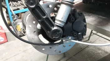 Die Leitung musste nun an die Bremspumpe am Lenker angeschlossen werden.