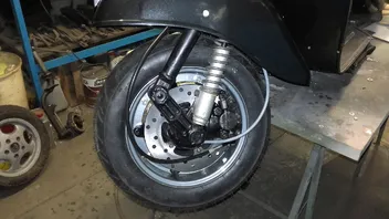 Heute war mein Kumpel da, um die V 50 Felge an die ET 2 Gabel zu adaptieren.