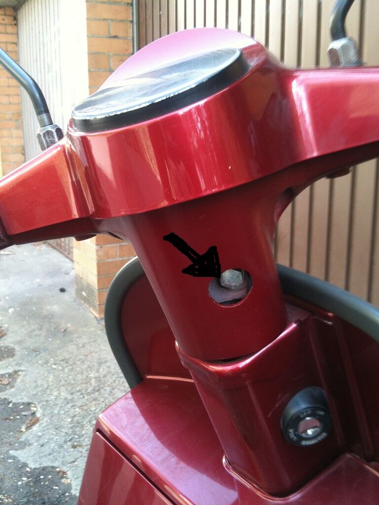 Tachoabdeckung ab (Schrauben aus Bild 2), Bremszug aus Hebel lösen,Dann die Schraube auf Bild 1 lösen. Lenker nach oben abnehmen, eventuell leichte gummihammerschläge von unten. Lenker richtung Sitzbank abklappen. Die Spezialschrauben mit dem passenden Schlüssel lösen und dann Gabel nach unten abziehen. Einer muss den Rahmen dann anheben.